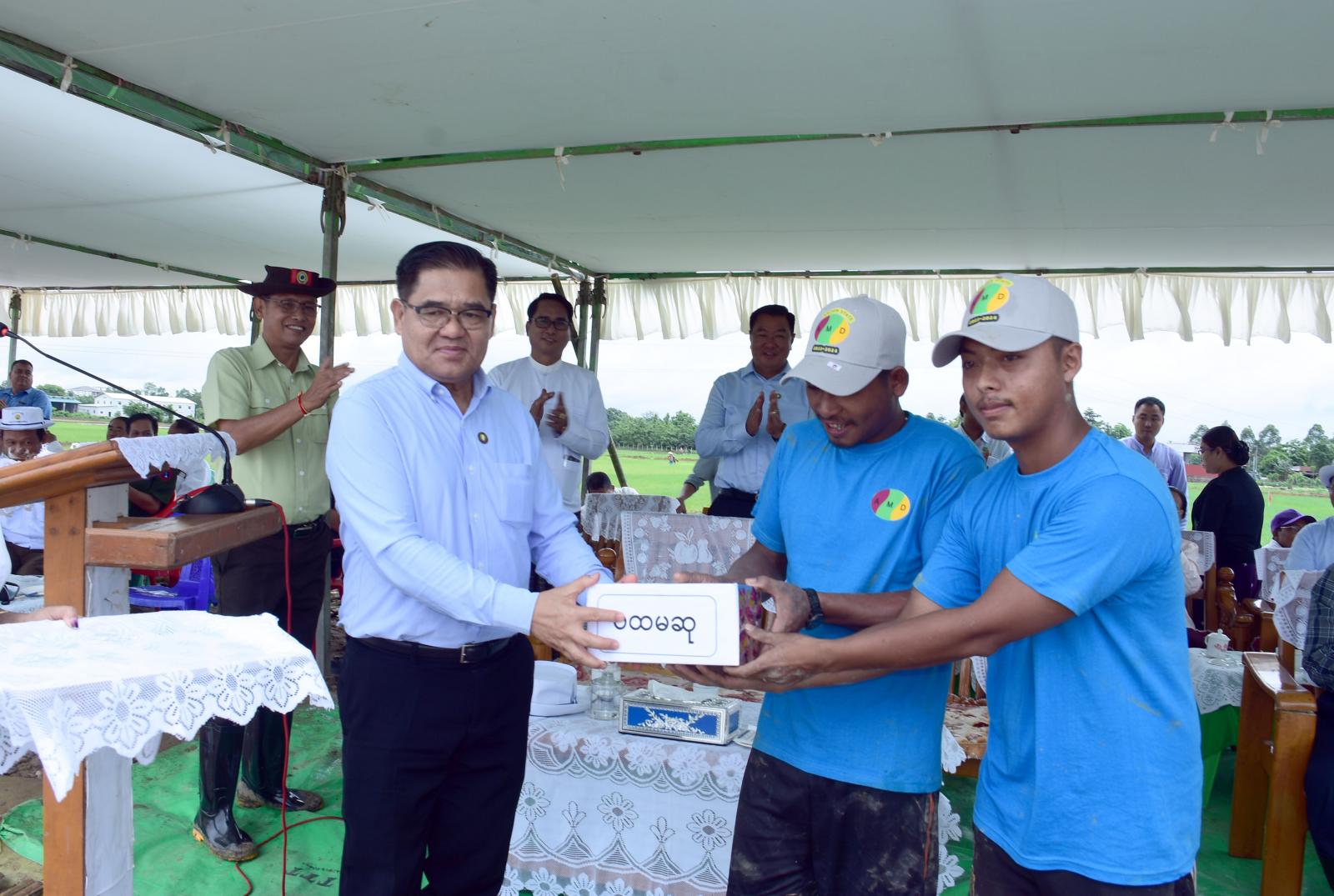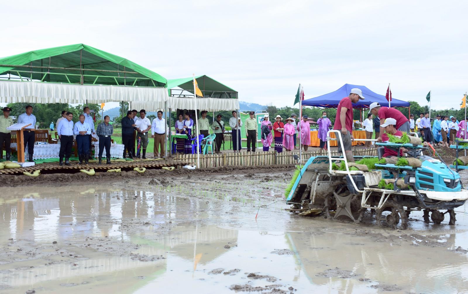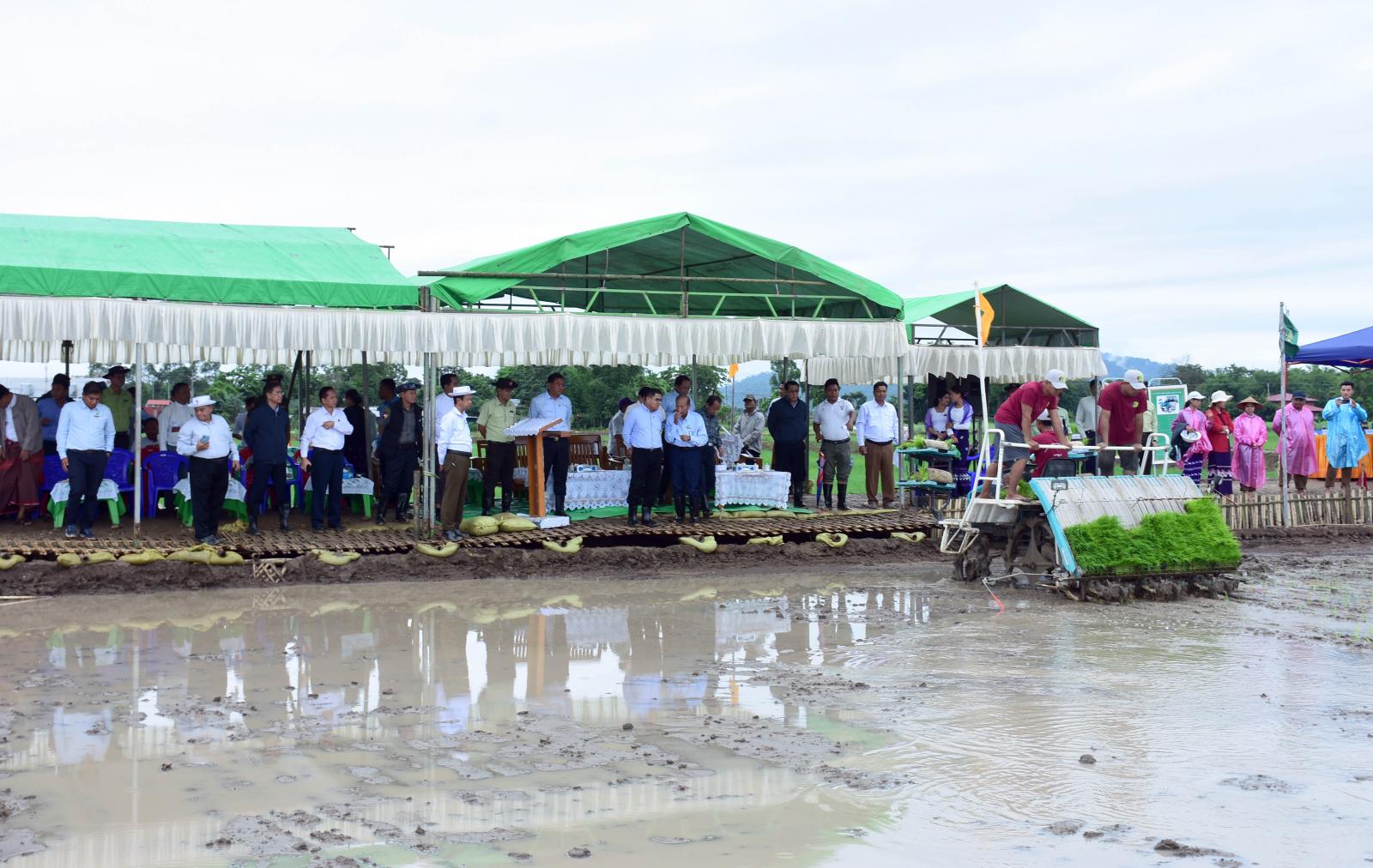 ကောက်စိုက်စက်ဖြင့် စပါးစိုက်ပျိုးခြင်းစွမ်းရည်ပြိုင်ပွဲတွင် ပြည်နယ်ဝန်ကြီးချုပ်ဦးခက်ထိန်နန်က မိမိတို့အစိုးရအဖွဲ့အနေဖြင့် နိုင်ငံ့စီးပွားမြှင့်တင်နိုင်ရေးအတွက် စိုက်ပျိုးမွေးမြူရေးကို အခြေခံသည့် ကုန်ထုတ်လုပ်မှုတိုးတက်မြှင့်မားလာစေရေးနှင့်ကျေးလက်နေတောင်သူများ၏ လူမှုစီးပွားဘဝ ပိုမိုဖြစ်ထွန်းလာစေရေး ပြည်နယ်၏စိုက်ပျိုးစွမ်းအားမြှင့်တင်နိုင်ရေးအားလုံးက ဝိုင်းဝန်းကြိုးပမ်းဆောင်ရွက်သွားရမည်ဖြစ်ပါကြောင်း၊ သို့ဖြစ်ပါ၍ စပါးစိုက်တောင်သူများအနေဖြင့် ပန်းတိုင်အထွက်နှုန်းရရှိရေး လယ်ယာလုပ်ငန်းခွင်များတွင် လယ်ယာသုံးစက်ကိရိယာများ ပိုမိုသုံးစွဲလာပြီး ခေတ်မီစိုက်ပျိုးနည်းပညာများကို အသုံးပြုတတ်လာစေရန် ပြည်နယ်အစိုးရ၊ ဌာနဆိုင်ရာများနှင့်အားလုံးက ဝိုင်းဝန်းပူးပေါင်းဆောင်ရွက်ကြရန် တိုက်တွန်းလိုကြောင်း ပြောကြားသည်။