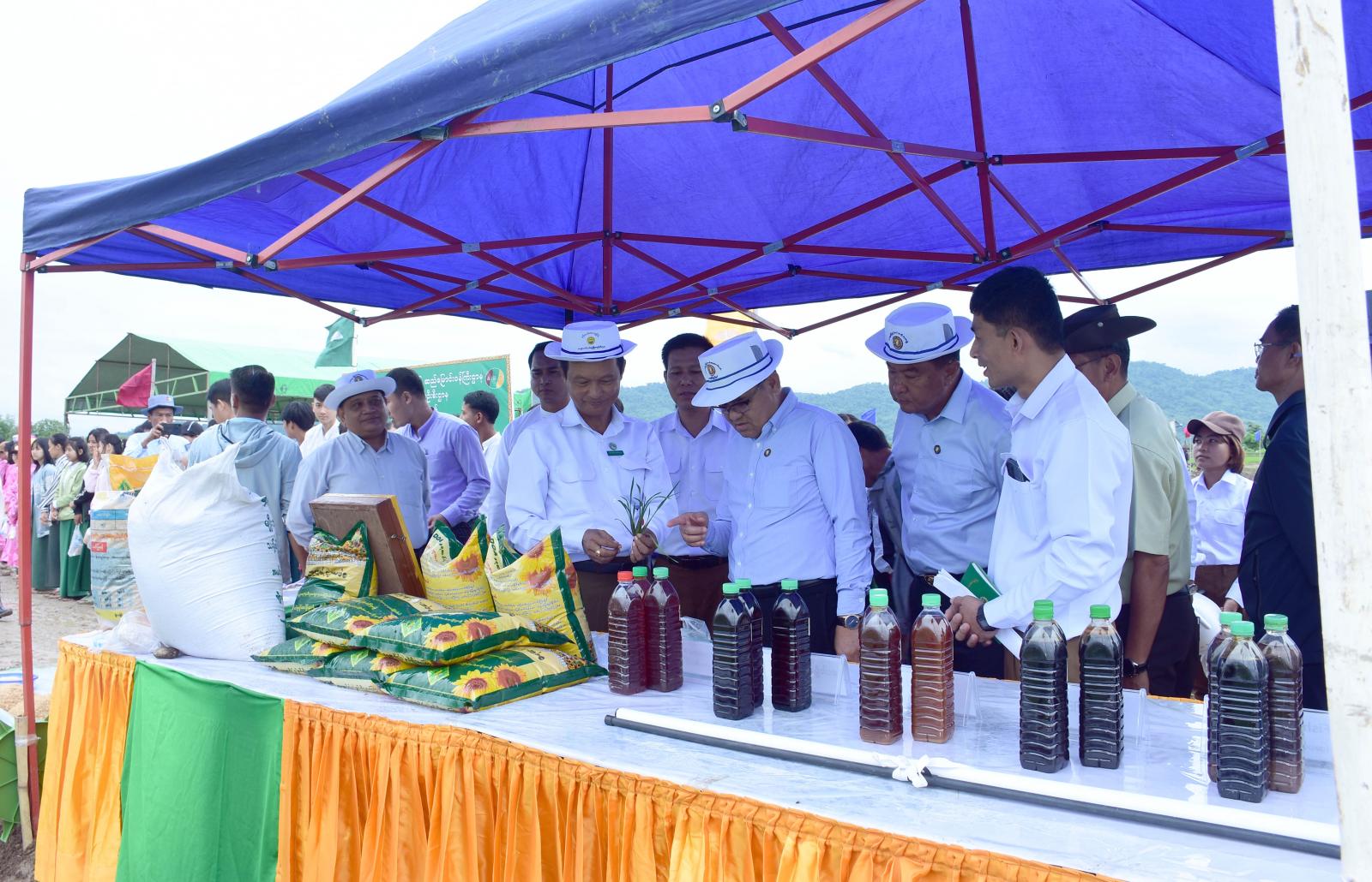 ထို့နောက် ပြည်နယ်ဝန်ကြီးချုပ်နှင့်တာဝန်ရှိသူများသည် တက်ရောက်လာသူများအား ရင်းရင်းနှီးနှီးနှုတ်ဆက်ခဲ့ကြပြီး ထောက်ပံ့ငွေများကိုပေးအပ်ကာ စိုက်ပျိုးရေးဦးစီးဌာနနှင့် စက်မှုလယ်ယာဦးစီးဌာနများမှ ပြသထားသည့် စိုက်ပျိုးရေးပစ္စည်းများနှင့် တောင်သူအသိပညာပေး စိုက်ပျိုးနည်းပညာပစ္စည်းများကို လှည့်လည်ကြည့်ရှုစစ်ဆေးခဲ့ကြကြောင်း သိရှိရသည်။