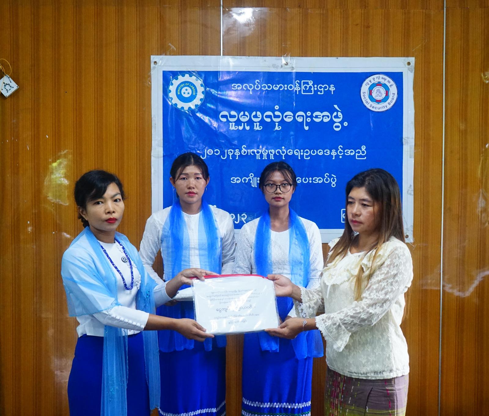 ရှေးဦးစွာ ကချင်ပြည်နယ်၊ လူမှုဖူလုံရေးရုံးမှ ပြည်နယ်တာဝန်ခံအရာရှိ ဒေါ်မြတ်မွန်မိုး က ၂၀၁၂ ခုနှစ် လူမှုဖူလုံရေးဥပဒေနှင့်အညီ အကျိုးခံစားခွင့်များအကြောင်း ရှင်းလင်းပြောကြားပြီး ကွယ်လွန်သူ အာမခံအလုပ်သမား ဦးဘရန်အောင်၏ ညီမဖြစ်သူ မနန်ဆိုင်းအား ကျန်ရစ်သူ အကျိုးခံစားခွင့် ငွေကျပ် (၄၃၂၀၀၀၀) အား ပေးအပ်၍ မနန်ဆိုင်းမှ ကျေးဇူးတင်စကား ပြန်လည်ပြောကြားခဲ့သည်။