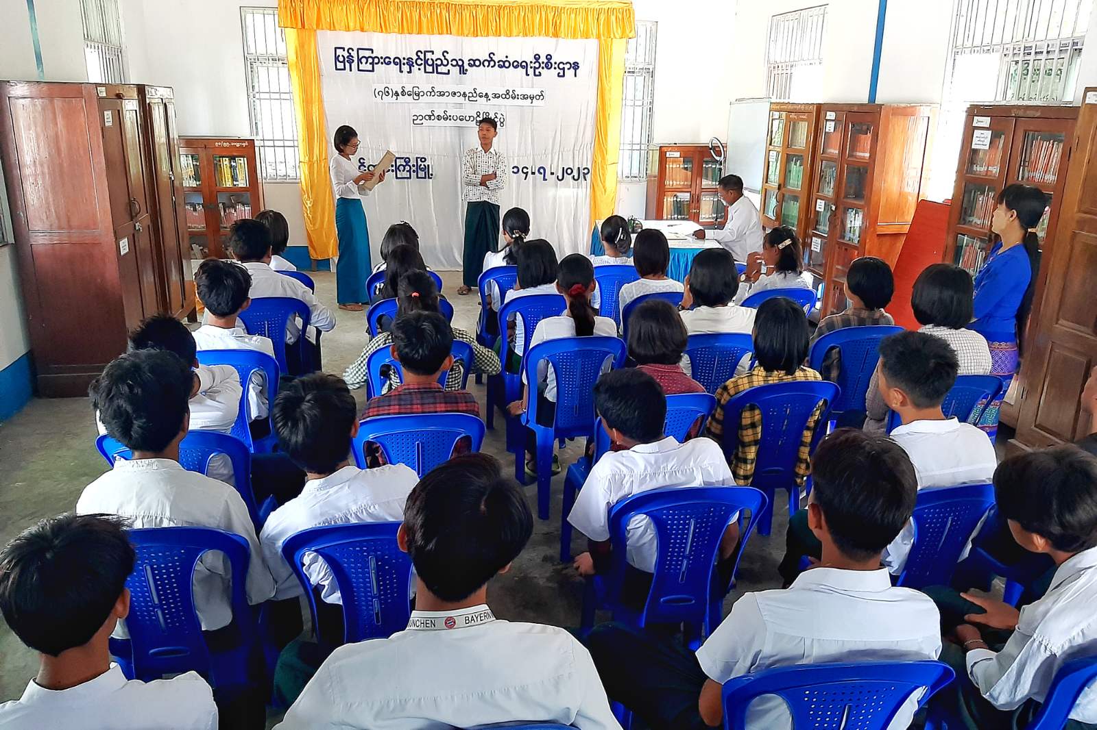 ရှေးဦးစွာ မြို့နယ်ဦးစီးမှူး ဒေါ်အေးမိုးမိုးမြင့်က ပြိုင်ပွဲကျင်းပရခြင်း ရည်ရွယ်ချက်နှင့် အမှတ်ပေးစည်းမျဉ်းစည်းကမ်းများကို ရှင်းလင်း ပြောကြားသည်။
