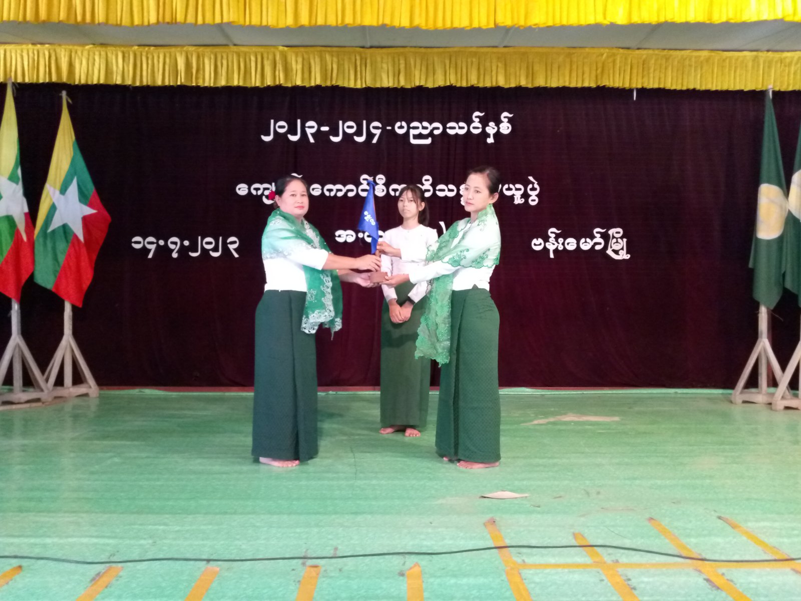 အဆိုပါ အခမ်းအနားကို ကျောင်းကောင်စီသီချင်းဖြင့် ကျောင်းသား၊ ကျောင်းသူများက သံပြိုင်သီဆို၍ ဖွင့်လှစ်ခဲ့ပြီး ကျောင်းအုပ်ဆရာမကြီး ဒေါ်ခိုင်စန္ဒာက အမှာစကားပြောကြားခြင်း၊ ကျောင်းကောင်စီ အမှုဆောင်အဖွဲ့ အမည်စာရင်းဖတ်ကြားခြင်း၊ ကျောင်းကောင်စီအမှုဆောင်အဖွဲ့ကတိသစ္စာ ခံယူခြင်းနှင့် ကျောင်းတစ်ကျောင်းလုံး ကတိသစ္စာခံယူခြင်း၊ တာဝန်အထိမ်းအမှတ်အလံများကို ကျောင်းအုပ်ဆရာမကြီးက ပေးအပ်ရာ ကျောင်းကောင်စီအသင်း (၅)သင်း ဖြစ်သည့် အနော်ရထာအသင်း၊ ကျန်စစ်သားအသင်း၊ ဘုရင့်နောင်အသင်း၊ အလောင်းဘုရားအသင်း၊ ဗန္ဓုလအသင်းခေါင်းဆောင်တို့က လက်ခံခဲ့ကြပြီး ကျောင်းသား၊ ကျောင်းသူများက နိုင်ငံတော်သီချင်းကို စုပေါင်းသံပြိုင်သီဆို၍ အခမ်းအနားကို ရုပ်သိမ်းလိုက်ကြောင်း သိရသည်။