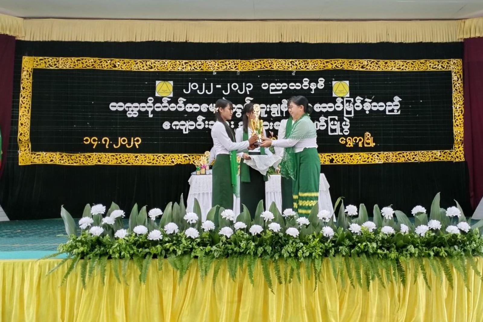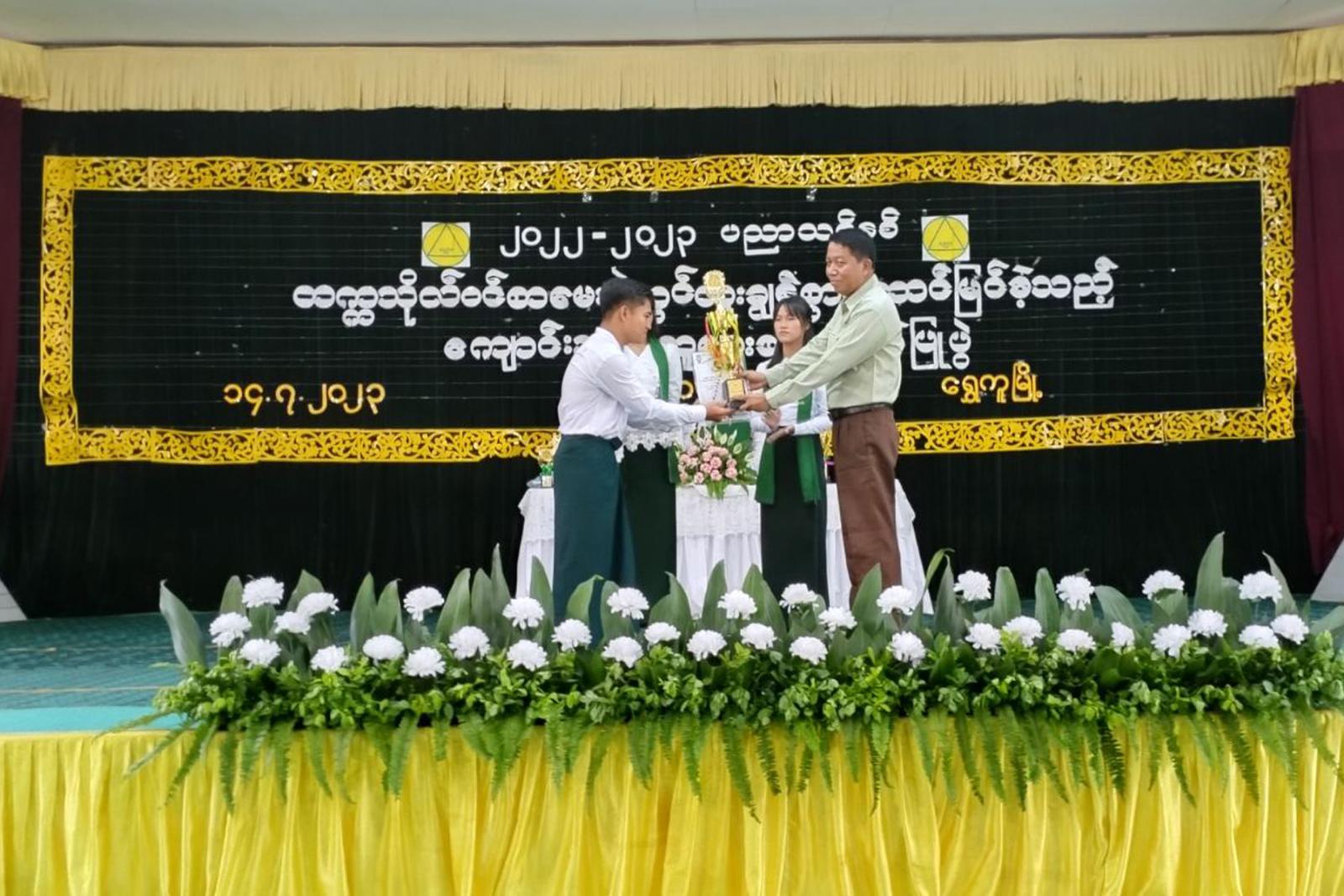 ထို့နောက် ဂုဏ်ပြုဆုချီးမြှင့်ပွဲကို ဆက်လက်ကျင်းပရာ မြို့နယ်ပညာရေးကြီးကြပ်မှုကော်မတီဥက္ကဋ္ဌ ဦးမြင့်ထွန်း၊ မြို့နယ်ပညာရေးမှူး ဒေါ်မြတ်နွယ်၊ အမှတ်(၁)အခြေခံပညာအထက်တန်းကျောင်း ကျောင်းအုပ်ဆရာမကြီး ဒေါ်မြင့်မြင့်သန်းနှင့် အလှူရှင်များက ၂၀၂၂-၂၀၂၃ ပညာသင်နှစ် တက္ကသိုလ်ဝင်စာမေးပွဲတွင် ထူးချွန်စွာ အောင်မြင်ခဲ့ကြသည့် သုံးဘာသာဂုဏ်ထူး၊ နှစ်ဘာသာဂုဏ်ထူး၊ တစ်ဘာသာဂုဏ်ထူးရရှိသူများအား တစ်ဘာသာလျှင် ဂုဏ်ပြုငွေ (၇၀၀၀ဝိ/) ကျပ်စီဖြင့် ဆုများအသီးသီးချီး မြှင့်ခဲ့ကြောင်း သိရသည်။