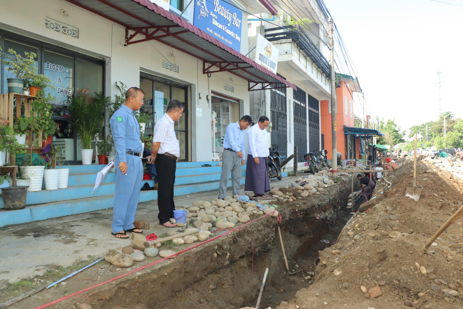 ထိုမှတဆင့် ပြည်နယ်ဝန်ကြီးသည် တာဝန်ရှိသူများနှင့်အတူ မြေမြင့်ရပ်ကွက် လမ်းသွယ်(၁၁) အား ကွန်ကရစ်လမ်းပခုံးအပါ သဲကျောက်ဖြင့် လမ်းသားမြှင့်တင်၍ ကတ္တရာလမ်းသစ်ခင်းခြင်း လုပ်ငန်းဆောင်ရွက်ပြီးစီးမှုအခြေအနေနှင့် ယုဇနရပ်ကွက်နှင့်မြေမြင့်ရပ်ကွက်ကြားရှိ စွယ်တော်လမ်း အား သဲကျောက်အမာခံခင်း၍ ကတ္တရာလမ်းသစ်ခင်းခြင်း လုပ်ငန်းဆောင်ရွက်နေမှုတို့အား လှည့် လည်ကြည့်ရှုစစ်ဆေးခဲ့ပြီး ပြည်နယ်ဝန်ကြီးက ဆောင်ရွက်လျက်ရှိသော စည်ပင်သာယာရေးလုပ်ငန်း များအား အရည်အသွေးပြည့်မီအောင် ဆောင်ရွက်ကြရေးနှင့် သတ်မှတ် ဘဏ္ဍာရေးနှစ်အတွင်း အချိန်မှီပြီးစီးအောင် ဆောင်ရွက်ရန် တာဝန်ရှိသူများအား မှာကြားခဲ့ကြောင်းသိရသည်။