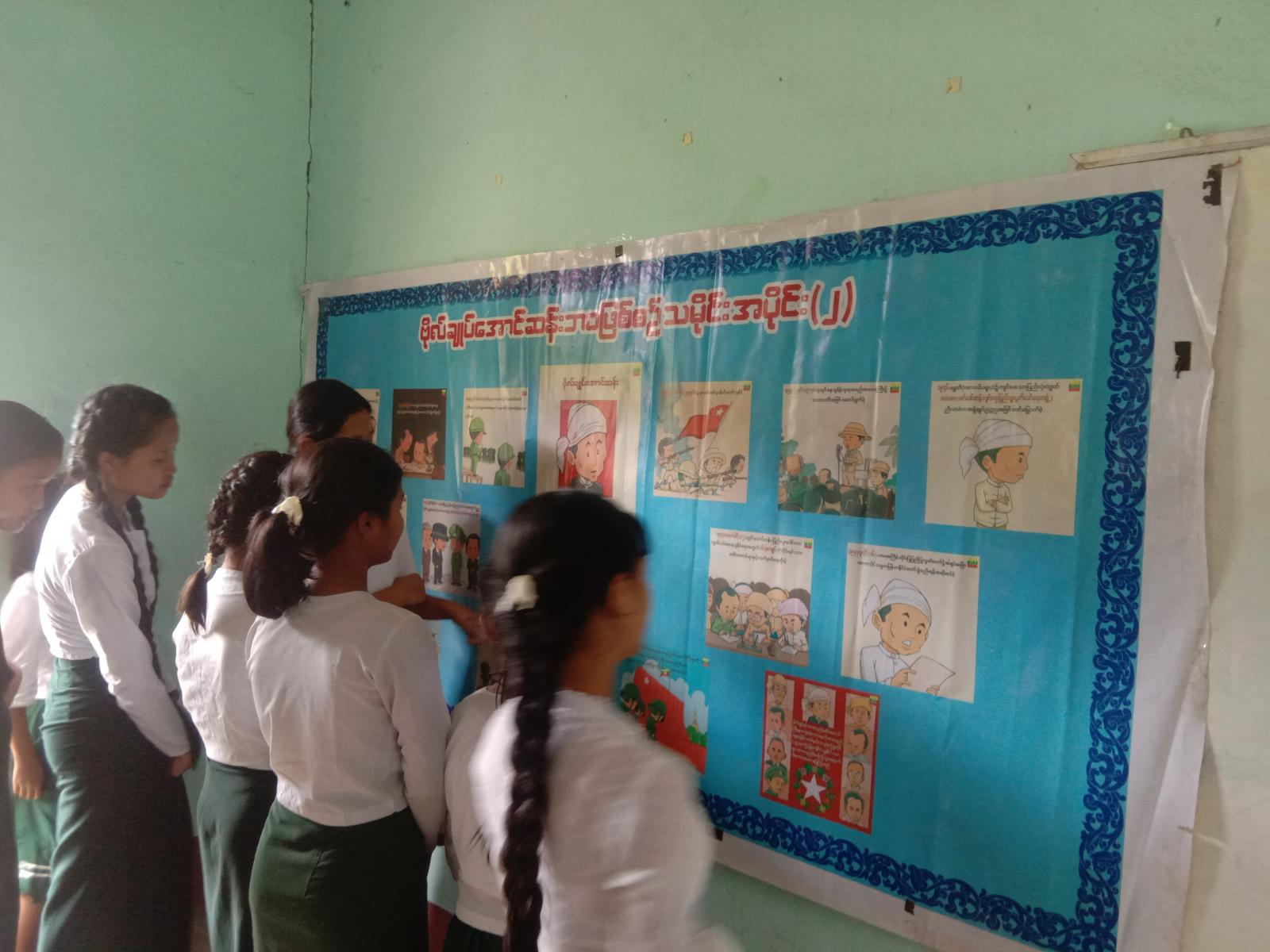 ဆက်လက်၍ ပြန်ကြားရေးနှင့်ပြည်သူ့ဆက်ဆံရေးဦးစီးဌာနမှ ပြသထားသော စာအုပ်စာစောင်များ၊ နံရံကပ်ပြဘုတ်များအား ကျောင်းသူ/ကျောင်းသားများမှ စိတ်ပါဝင်စားစွာ ကြည့်ရှုခဲ့ကြပြီး အခမ်းအနားကို ညနေ ၄ နာရီ တွင် ရုပ်သိမ်းခဲ့သည်။