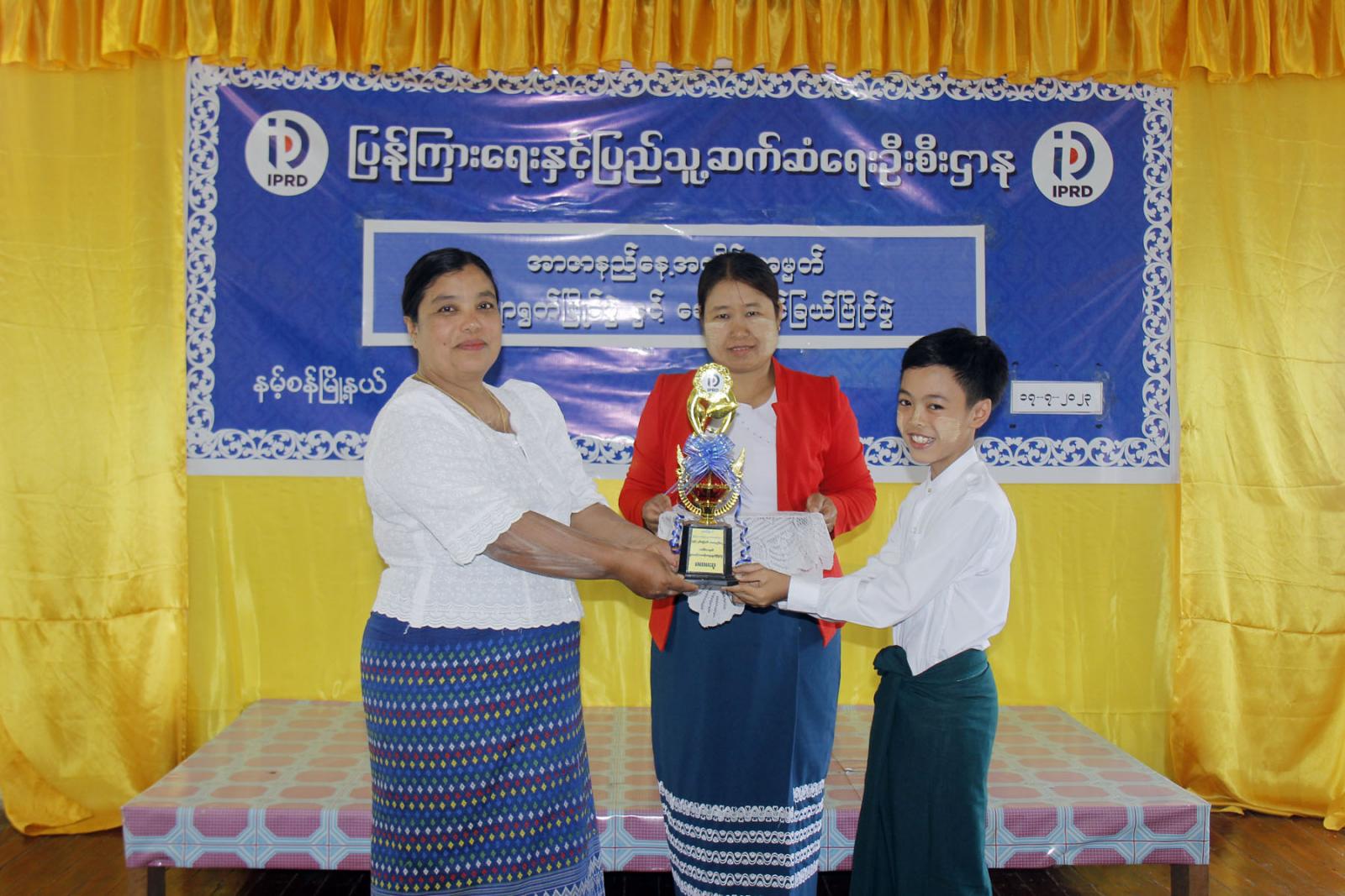 ထို့နောက် ဆုချီးမြှင့်ပွဲအခမ်းအနားကို နေ့လယ် ၂ နာရီ အချိန်တွင် ဆက်လက်ကျင်းပခဲ့ရာ (၇၆)နှစ်မြောက် အာဇာနည်နေ့အထိမ်းအမှတ် ကဗျာရွတ်ပြိုင်ပွဲနှင့် ဆေးရောင်ခြယ်ပြိုင်ပွဲများတွင် ပထမ၊ ဒုတိယ၊ တတိယဆုရရှိသော ကျောင်းသား၊ ကျောင်းသူ ၉ ဦးကို မြို့နယ်ပြန်ကြားရေးနှင့် ပြည်သူ့ဆက်ဆံရေးဦးစီးဌာနမှ ဦးစီးအရာရှိ ဒေါ်ဥမ္မာအောင်၊ အမှတ်(၂)ကျေးရွာ အ.မ.က ကျောင်းအုပ်ဆရာကြီး ဦးသန်းဝင်းနှင့် စာပေဝါသနာရှင်များအသင်း (Book Club)မှ တာဝန်ရှိသူများက ဆုတံဆိပ်များ ပေးအပ်ချီးမြှင့်ခဲ့ကြောင်း သိရသည်။