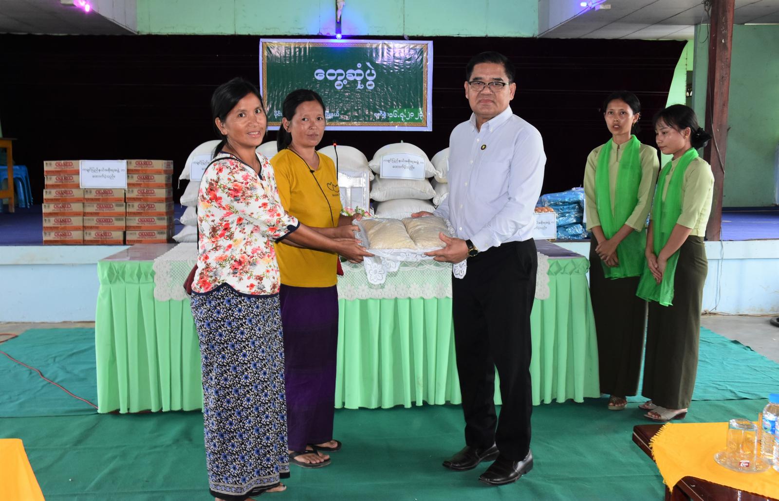 ထို့နောက် ပြည်နယ်ဝန်ကြီးချုပ်၊ ပြည်နယ်တရားလွှတ်တော် တရားသူကြီးချုပ်နှင့် ပြည်နယ်ဝန်ကြီး များက အိမ်ထောင်စုများအတွက် ဆန်အိတ်(၂၀)၊ ခေါက်ဆွဲခြောက်ဖာ(၂၀)၊ ကြက်ဥအလုံး (၂၀၀)တို့ နှင့် ကျောင်းသား/ ကျောင်းသူများအတွက် ကျောပိုးအိတ်၊ ဗလာစာအုပ်နှင့် စာရေးကိရိယာများ၊ အခြေခံပညာ မူလတန်းကျောင်း ဆရာ/ဆရာမ (၈)ဦးတို့အတွက် ထောက်ပံ့ငွေကျပ် ၈ သိန်း၊ ဆန်အိတ် ၈ အိတ်တို့ကို အသီးသီးထောက်ပံ့ပေးအပ်ရာ နန်ဆန်ယန်ပြည်သူများ ကိုယ်စား ဒေသခံတစ်ဦးက ကျေးဇူးတင်စကား ပြန်လည်ပြောကြားပြီး ရပ်မိ/ရပ်ဖ ဦးဖော်လားဂမ်ဖန်နှင့် ကသလစ်ဘုန်းတော်ကြီး ဖာသာယုံဝါတို့က အားပေး စကားပြောကြားကာ ဆုတောင်းဆက်ကပ်ပေးသည်။