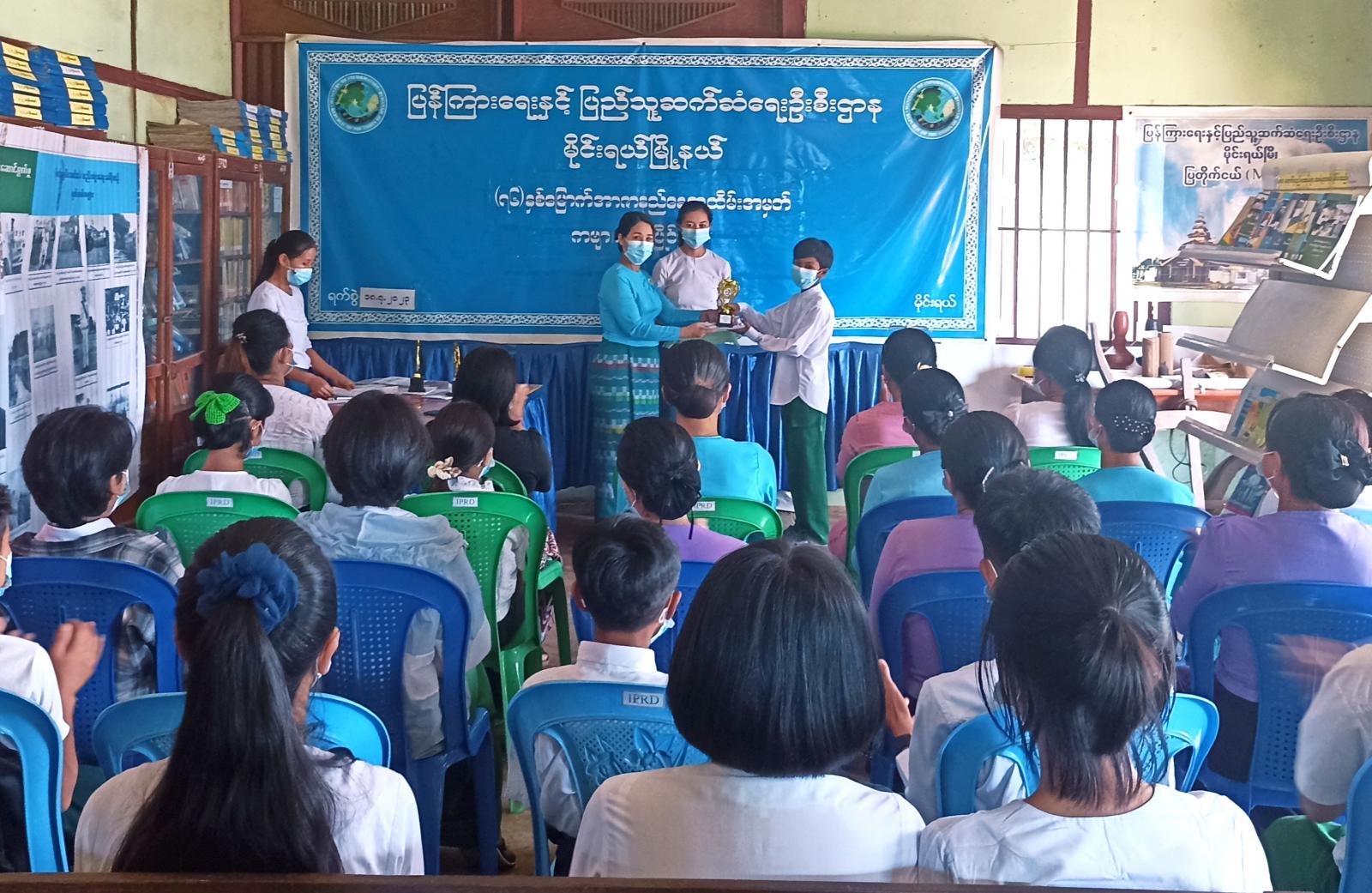 ယင်းနောက် ဆုပေးပွဲကို ကျင်းပရာ မြို့နယ်အမျိုးသမီးရေးရာအဖွဲ့ဉက္ကဋ္ဌ ဒေါ်တင်ထွေးရီ၊ မြို့နယ်ပြန်ကြားရေးနှင့်ပြည်သူ့ဆက်ဆံရေးဦးစီးအရာရှိ ဒေါ်ခင်မာလာနှင့် ဌာနဆိုင်ရာတာဝန် ရှိသူများက ၇၆ နှစ်မြောက် အာဇာနည်နေ့အထိမ်းအမှတ် ကဗျာနှင့် ပန်းချီပြိုင်ပွဲများတွင် ဆုရရှိသည့် ကျောင်းသား/သူများကို ဆုများ အသီးသီးပေးအပ်ခဲ့ကြောင်း သိရသည်။