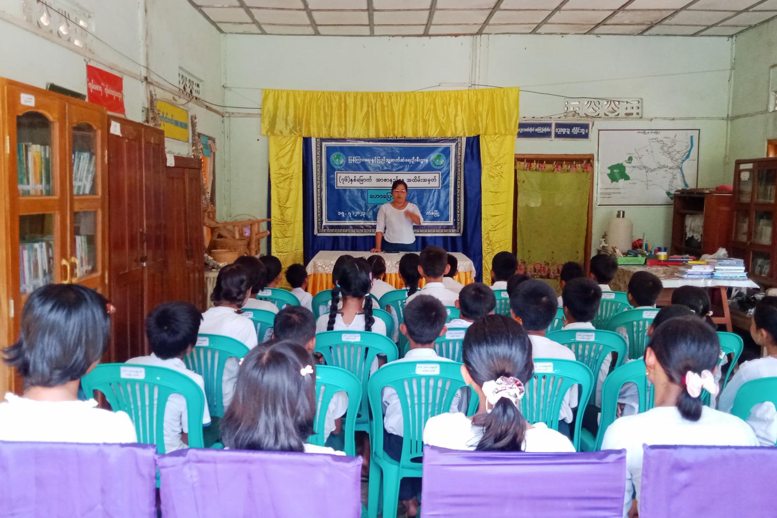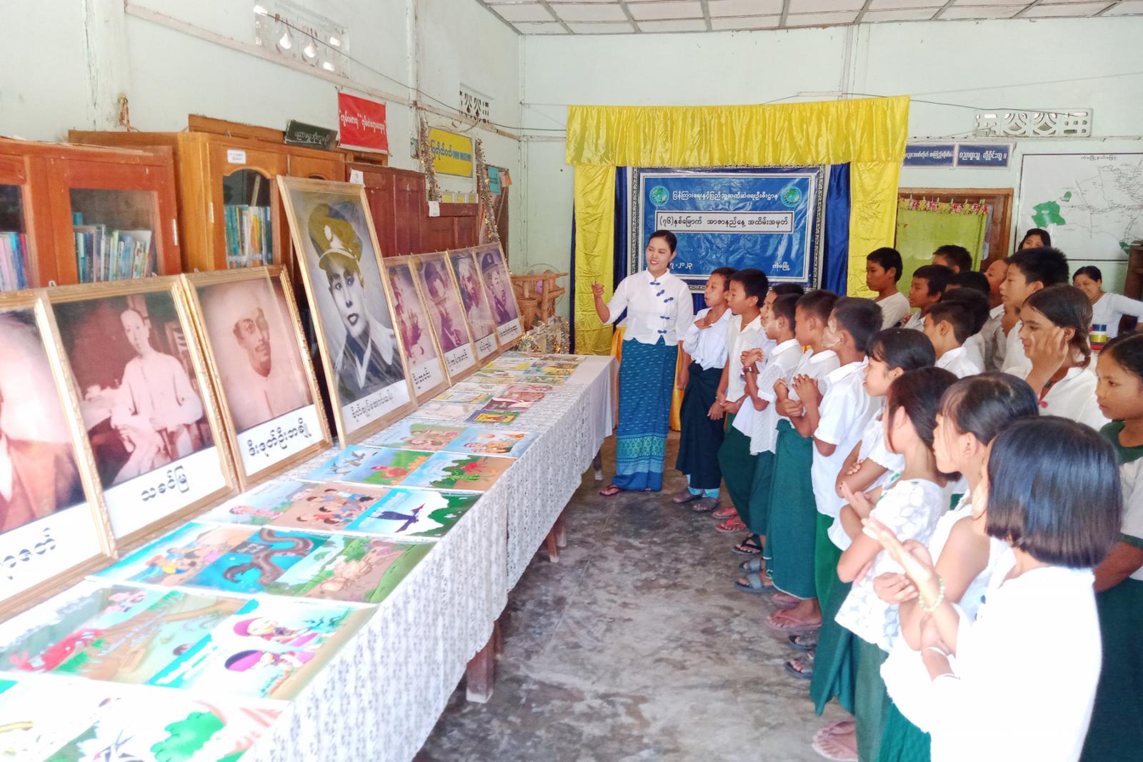 ထိုသို့ ကျင်းပပြုလုပ်ရာတွင် ရှေးဦးစွာ ပြန်ကြားရေးနှင့်ပြည်သူ့ဆက်ဆံရေးဦးစီးဌာန မြို့နယ်ဦးစီးမှူး ဒေါ်သန်းသန်းဆင့်က အာဇာနည်နေ့ဖြစ်ပေါ်လာပုံ သမိုင်းကြောင်းနှင့် စာဖတ်ခြင်းမှရရှိသော အကျိုးကျေးဇူးများအကြောင်း အသိပညာပေးဟောပြောခဲ့သည်။ ဆက်လက်၍ ဓါတ်ပုံနှင့် နံရံကပ်စာစောင်ပြပွဲကို ကျင်းပပြုလုပ်ရာ ဗိုလ်ချုပ်အောင်ဆန်းနှင့်တကွ အာဇာနည်ခေါင်းဆောင်ကြီးများ၏ မှတ်တမ်းဓါတ်ပုံများ၊ ကျောင်းသား၊ ကျောင်းသူများ သိသင့်၊ သိထိုက်သော အာဇာနည်နေ့သမိုင်းကြောင်းများအား ပြသခဲ့ပြီး စာအုပ်စာစောင်ပြပွဲကို ခင်းကျင်းပြသရာ ကျောင်းသား၊ ကျောင်းသူများက စိတ်ပါဝင်စားစွာ လေ့လာကြခဲ့ကြကြောင်း သိရသည်။