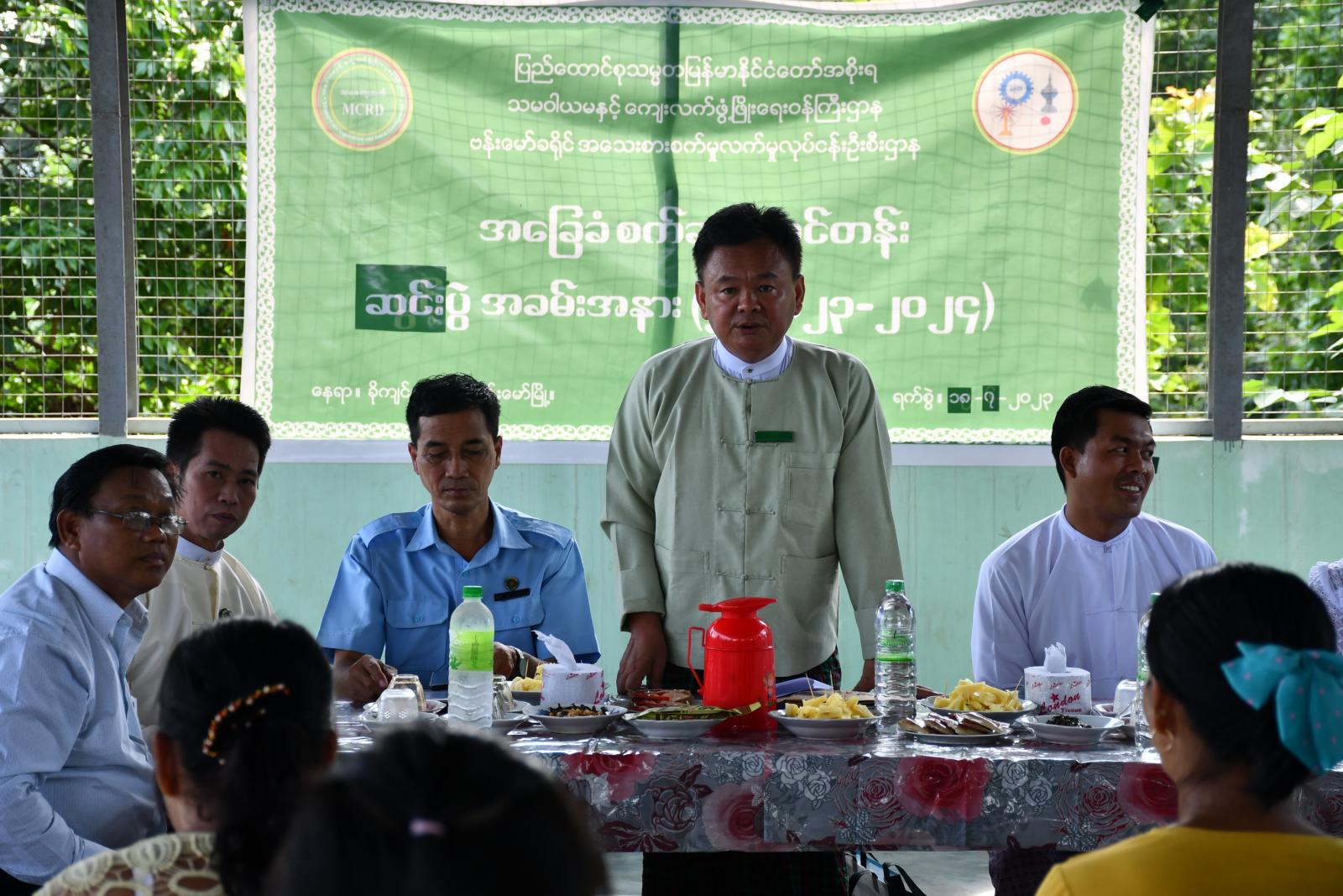 အဆိုပါ အခြေခံစက်ချုပ်နည်းပညာသင်တန်းဆင်းပွဲအခမ်းအနားတွင် ခရိုင်အထွေထွေအုပ်ချုပ်ရေးဦးစီးဌာနမှ လက်ထောက်ညွှန်ကြားရေးမှူး ဦးဇော်မင်းနိုင်ကခရိုင်အသေးစားစက်မှုလက်မှု လုပ်ငန်းဦးစီးဌာနအနေဖြင့် သမဝါယမနှင့်ကျေးလက်ဖွံ့ဖြိုးရေးဝန်ကြီးဌာန၏ မျှော်မှန်းချက်နှင့်အညီ သမဝါယမကဏ္ဍနှင့် အသေးစားစက်မှုလက်မှုလုပ်ငန်းများ စနစ်တကျထွန်းကားစေပြီး ကျေးလက်နေပြည်သူများ၏ လူမှုစီးပွားဘဝ စဉ်ဆက်မပြတ်ဖွံ့ဖြိုးတိုးတက်လာစေရန် စီမံဆောင်ရွက်ပေးခြင်းဖြင့် မြို့ပြနှင့်ကျေးလက်များအကြား၊ တိုင်းဒေသကြီးနှင့်ပြည်နယ်များအကြား ဖွံ့ဖြိုးမှုကွာဟချက် ကျဉ်းမြောင်းစေရေးမျှော်မှန်းဆောင်ရွက်လျက်ရှိပါကြောင်း၊ အသေးစားကုန်ထုန်လုပ်ငန်းများဆိုင်ရာ အသက်မွေးဝမ်းကျောင်းဆိုင်ရာကာလတိုသင်တန်းများကို ကျေးလက်နေပြည်သူများအား ဖွင့်လှစ်သင်ကြားပေးခြင်းကြောင့် အလုပ်အကိုင်အခွင့်အလမ်းများဖန်တီးပေးနိုင်မည်ဖြစ်ပြီး ကျေးလက်နှင့် မြို့ပြနေပြည်သူများ၏ ဝင်ငွေတိုးပွားရေးကို အထောက်အကူဖြစ်စေရန် အသက်မွေးဝမ်းကျောင်းဆိုင်ရာ အခြေခံစက်ချုပ်သင်တန်းများ ဖွင့်လှစ်သင်ကြားပေးခြင်းအားဖြင့် ပညာရေးဆုံးခန်းတိုင်အောင် ဆက်လက်မသင်ယူနိုင်သောအမျိုးသမီးငယ်များနှင့် အိမ်ထောင်ရှင်အမျိုးသမီးများအား အသက်မွေးဝမ်းကျောင်းပညာများ သင်ယူနိုင်ပြီးလက်တွေ့လူမှုဘဝတွင် လုပ်ငန်းရှင်များ၊ အတတ်ပညာရှင်များအဖြစ် အသက်မွေးဝမ်းကျောင်းလုပ်ငန်းများဆောင်ရွက်၍ အိမ်တွင်းတစ်ပိုင်တစ်နိုင် ကိုယ်ပိုင်လုပ်ငန်းငယ်များလည်း ထူထောင်လာနိုင်မည်ဖြစ်ကြောင်း သင်တန်းဆင်းပွဲအမှာစကား ပြောကြားခဲ့ပြီး သင်တန်းသူ မဂျာဆိုင်းမွန်းက ကျေးဇူးတင်စကားပြောကြားခဲ့သည်။