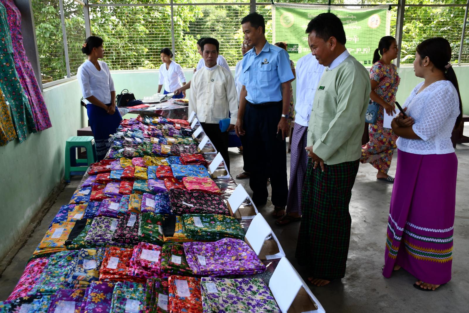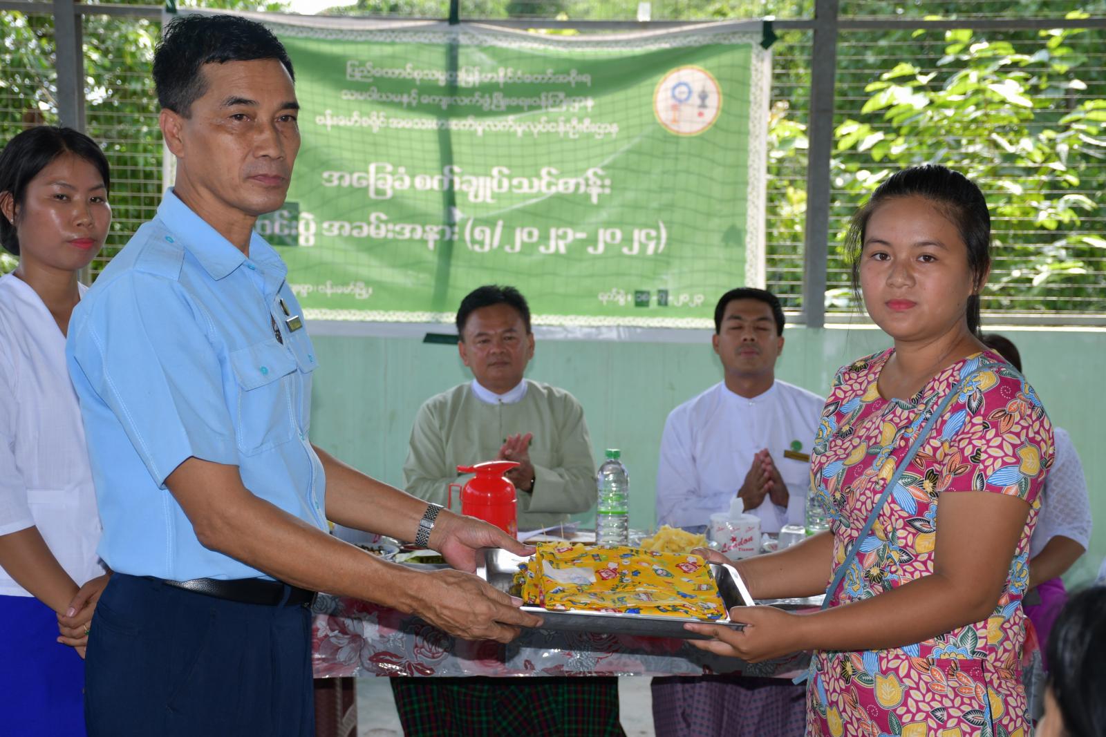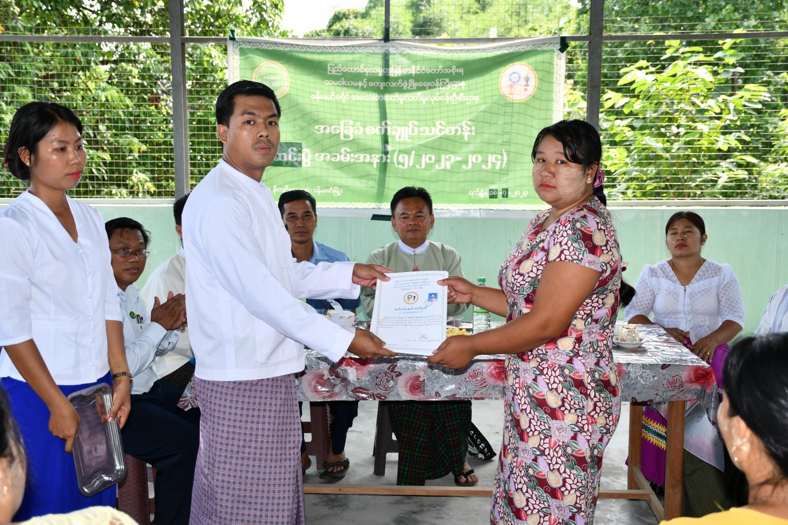 ဆက်လက်၍ ခရိုင်အသေးစားစက်မှုလက်မှုလုပ်ငန်းဦးစီးဌာနမှ လက်ထောက်ညွှန်ကြားရေးမှူး ဦးအောင်တင်စိုးက သင်တန်းဆင်းလက်မှတ်များကို ပေးအပ်ခြင်းနှင့် ခရိုင်စားသုံးသူရေးရာဦးစီးဌာနမှ လက်ထောက်ညွှန်ကြားရေးမှူး ဦးအောင်ကျော်ဦးက စက်ချုပ်သင်တန်းထွက်ကုန် ကုန်ချောပစ္စည်းများကိုပေးအပ်ခဲ့ရာ သင်တန်းသူများက လက်ခံရရယူခဲ့သည်။ ၎င်းအခြေခံ စက်ချုပ်နည်းပညာ သင်တန်းတွင် သင်တန်းသူ (၂၀) ဦးအား သင်္ဘောသားအင်္ကျီ၊ ရင်ဖြတ်ဆက်အင်္ကျီ၊ ရင်စေ့အင်္ကျီ၊ ရင်ဖုံးအင်္ကျီ၊ ဘောင်းဘီ၊ ချိတ်ထဘီ၊ လေးလွှာစကတ်၊ သုံးလွှာစကတ်ချုပ် နည်းပညာများ သင်ကြားပို့ချခဲ့ပြီး (၁၉.၆. ၂၀၂၃ ရက်နေ့မှ ၁၈.၇.၂၀၂၃ ရက်နေ့အထိ) သင်ကြားပို့ချ ပေးခဲ့ကြောင်း သိရသည်။