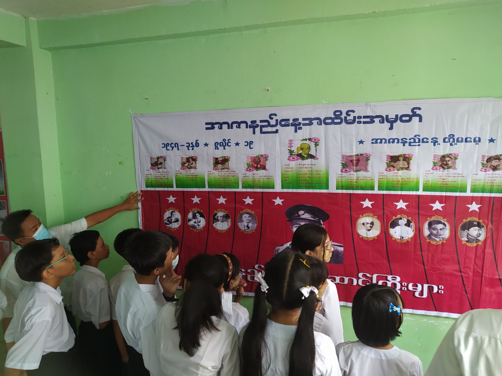 ယင်းနောက် အာဇာနည်နေ့နှင့်ပတ်သက်သည့် အကြောင်းအရာများပါဝင်သည့် နံရံကပ် စာစောင်များပြသခြင်း၊ စာဖတ်ရှိန်မြင့်မားရေး စာအုပ်၊ စာပေနှင့် ကျောင်းသား/ကျောင်းသူများ နီးစပ်စေမည့်စာအုပ်ပြပွဲ ပြသခြင်းများဆောင်ရွက်ခဲ့ရာ ကျောင်းသားလူငယ်များမှ စိတ်ဝင်တစား လေ့လာ ကြည့်ခဲ့ကြကြောင်း သိရသည်၊၊