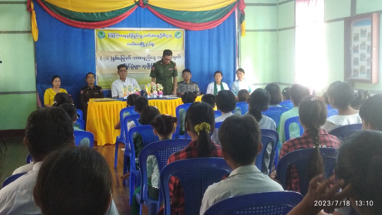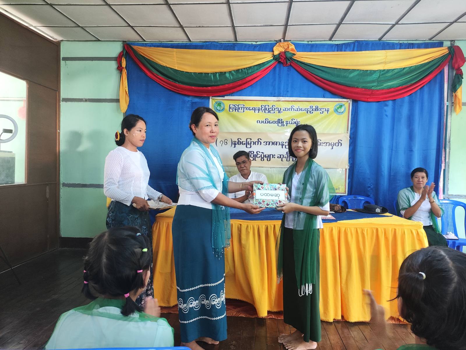 ရှေးဦးစွာ လယ်ဝေးမြို့နယ်စီမံအုပ်ချုပ်ရေးအဖွဲ့ဝင် ဗိုလ်မှူးမင်းကျော်သူက အမှာစကားပြောကြားခဲ့ပြီး အလယ်တန်းအဆင့် ကျပန်းစကားပြောပြိုင်ပွဲတွင် ပထမဆုရရှိသည့် မစုစုမျိုး၊ ဒုတိယဆုရရှိသည့် မယွန်းလဲ့အိမ်၊ တတိယဆုရရှိသည့် မောင်ဇင်ဘုန်းလူ၊ မူလတန်းအဆင့်ကဗျာရွတ်ပြိုင်ပွဲတွင် ပထမဆုရရှိသည့် မအိမ်ဂျယ်သွန်း၊ ဒုတိယဆုရရှိသည့် မဇွန်ပန်းဖြူ၊ တတိယဆုရရှိသည့် မသမုဒယခိုင်နှင့် ဆေးရောင်ခြယ်ပြိုင်ပွဲတွင် ပထမဆုရရှိသည့် မကေဇင်သက်၊ ဒုတိယဆုရရှိသည့် မအိန်ဂျယ်သွန်း၊ တတိယဆုရရှိသည့် မမေသူဝင်းတို့အား မြို့နယ်စီမံအုပ်ချုပ်ရေးအဖွဲ့ဝင် ဦးဝင်းအောင်၊ မြို့နယ်ရဲတပ်ဖွဲ့မှူးရဲမှူး မိုးကျော်သူ၊ မြို့နယ်လဝကဦးစီးမှူး ဦးခင်မောင်ထွေးနှင့် မြို့နယ်အဆင့်ဌာနဆိုင်ရာများက ဆုများပေးအပ်ချီးမြှင့်သည်။