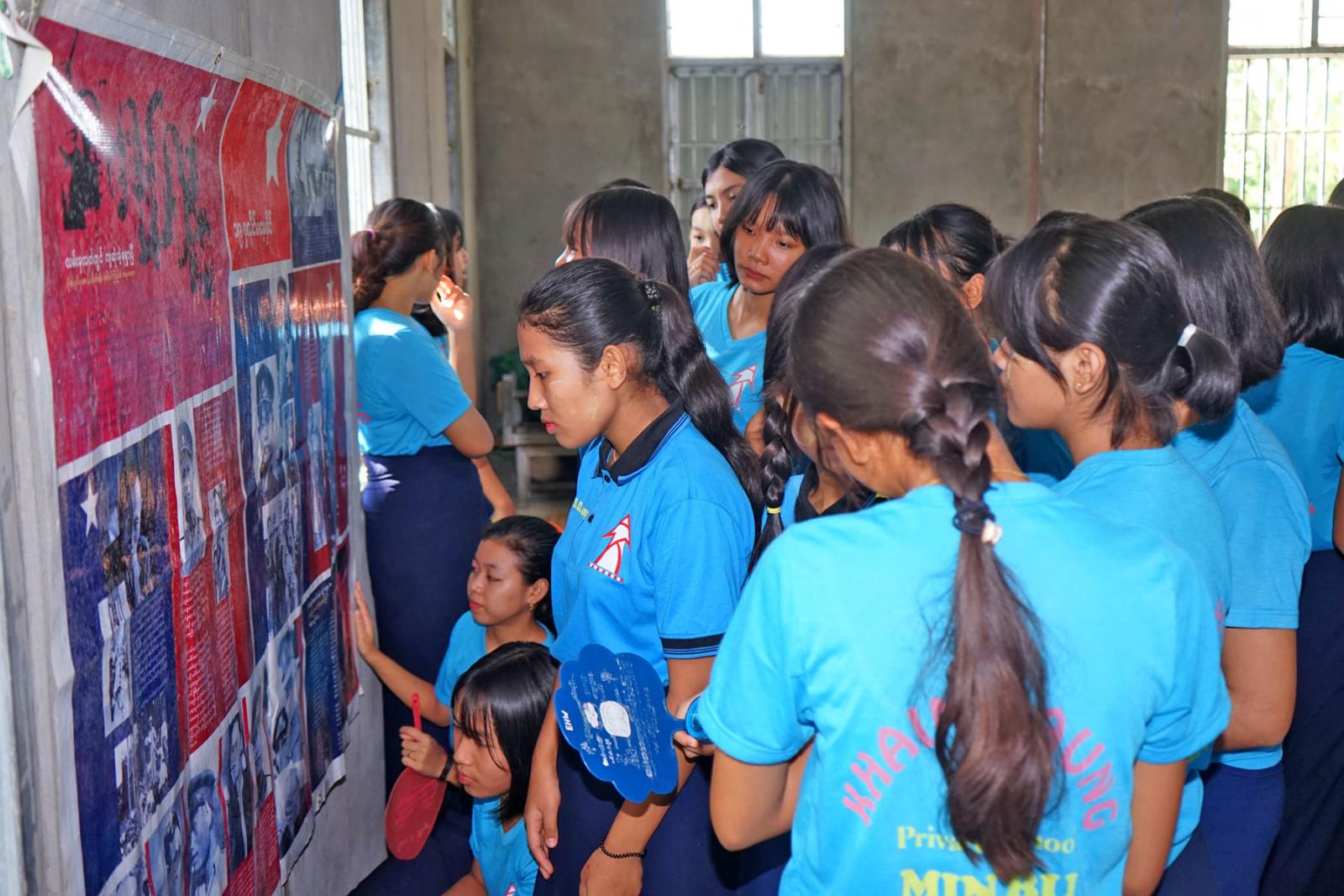 ထို့နောက် မင်းဘူးခရိုင် ပြန်ကြားရေးနှင့်ပြည်သူ့ဆက်ဆံရေးဦးစီးဌာနမှ မြို့နယ်ဦးစီးမှူး ဒေါ်ခင်ဝါဝါလှိုင်က ၂၀၂၃ ခုနှစ်၊ ဇူလိုင် ၁၉ ရက်နေ့တွင် ကျရောက်သည့် (၇၆)နှစ်မြောက် အာဇာနည်နေ့ အကြောင်းသိကောင်းစရာနှင့် (၇၆)နှစ်မြောက် အာဇာနည်နေ့အထိမ်းအမှတ် အသိပညာပေး နံရံကပ် စာစောင်နှင့် သုတ၊ ရသစာအုပ်များ ခင်းကျင်းပြသပေးနေမှုကို ရှင်းလင်းပြောကြားခဲ့ပြီး ကျောင်းသား/ ကျောင်းသူများက စိတ်ပါဝင်စားစွာ ကြည့်ရှုလေ့လာခဲ့ကြောင်း သိရသည်။