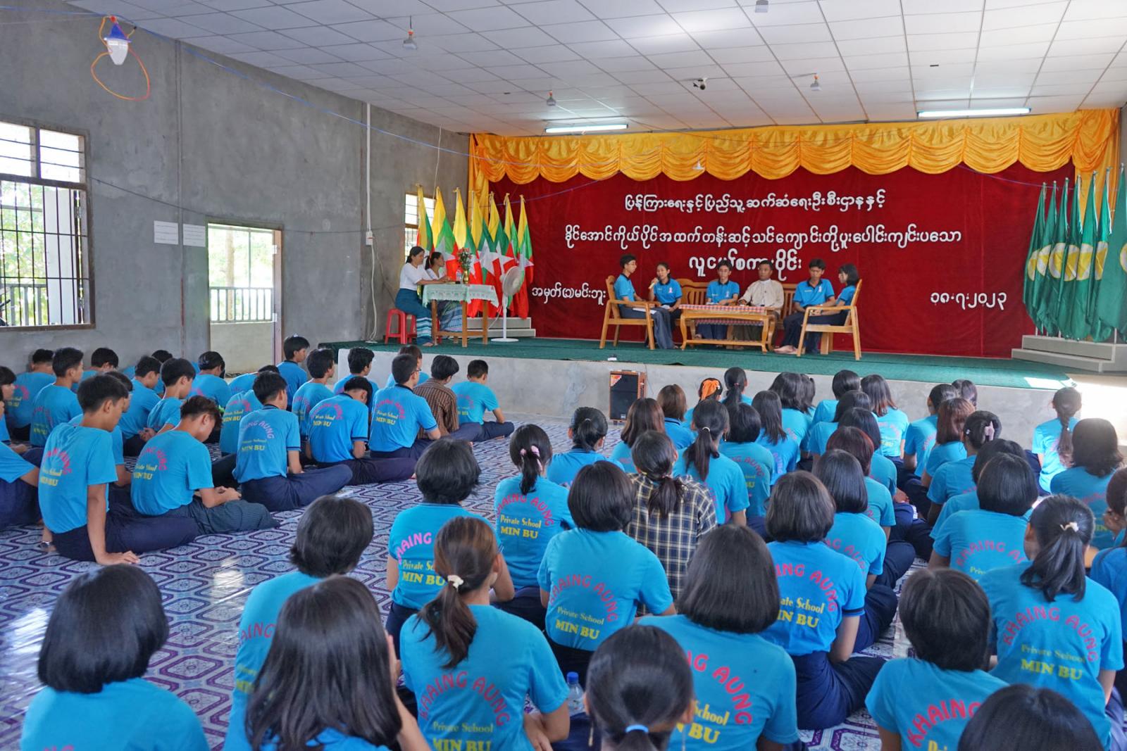 မကွေးတိုင်းဒေသကြီး၊ မင်းဘူးခရိုင်၊ မင်းဘူးမြို့၌ ကျောင်းသားလူငယ်များ ဗလငါးတန်ဖွံ့ဖြိုး တိုးတက်စေရန်ရည်ရွယ်၍ မင်းဘူးခရိုင် ပြန်ကြားရေးနှင့်ပြည်သူ့ဆက်ဆံရေးဦးစီးဌာနနှင့် ခိုင်အောင် ကိုယ်ပိုင်အထက်တန်းအဆင့်သင်ကျောင်းတို့ ပူးပေါင်းပြီး လူငယ်စကားဝိုင်းကို ယမန်နေ့ မွန်းလွဲ ၂ နာရီအချိန်က အဆိုပါကိုယ်ပိုင်အထက်တန်းကျောင်းခန်းမ၌ ကျင်းပပြုလုပ်ခဲ့ကြောင်း သိရသည်။