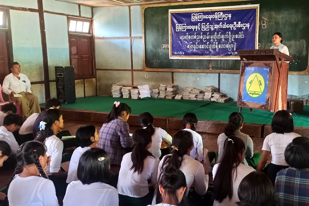 ရှေးဦးစွာ ခရိုင်ပြန်ကြားရေးနှင့်ပြည်သူ့ဆက်ဆံရေးဦစီးဌာန လက်ထောက်ညွှန်ကြားရေးမှူး ဦးစိုးမြင့်က ကျောင်းသား/သူများအား “ရည်မှန်းချက်ရှိရမည်”ခေါင်းစဉ်ဖြင့်လည်းကောင်း၊ စာပေဖတ်ရှုခြင်းဖြင့် ရရှိသည့် အကျိုးကျေးဇူးများကို အသိပညာပေး ဟောပြောခဲ့သည်။