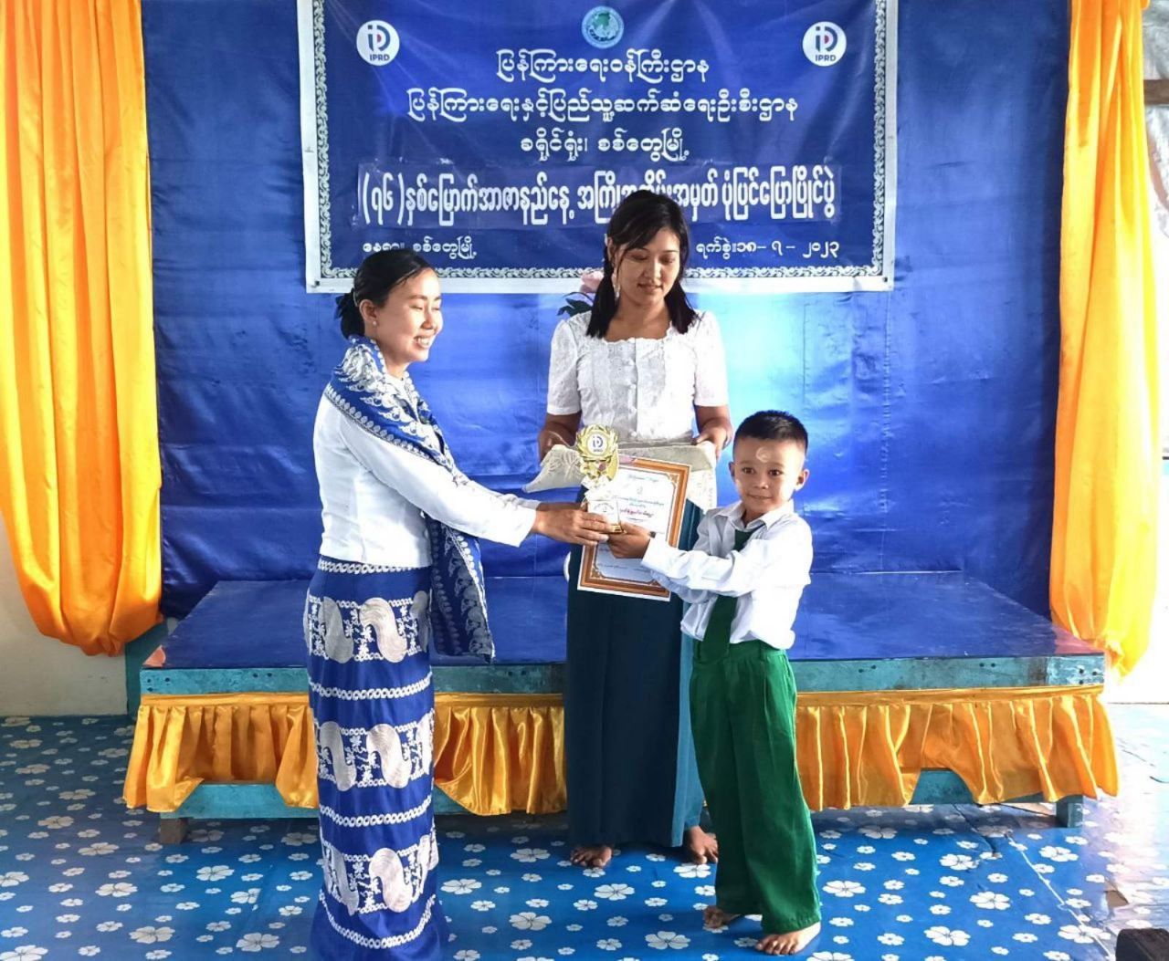 ပြိုင်ပွဲများအပြီးတွင် ဆုချီးမြှင့်ပွဲ အခမ်းအနားကို ဆက်လက်ကျင်းပ ရာပထမ၊ ဒုတိယ၊ တတိယနှင့် နှစ်သိမ့်ဆုရရှိသည့်ကျောင်းသား/ကျောင်းသူများအား ပြန်ကြားရေးနှင့် ပြည်သူ့ဆက်ဆံရေးဦးစီးဌာန၊ ပြည်နယ်ဦးစီးမှူး ဦးတင်ကိုဝင်း၊ လက်ထောက်ညွှန်ကြားရေးမှူး ဒေါ်ခင်ယုယုနွယ်နှင့် တာဝန်ရှိသူများက ဆုများအသီးသီးပေးအပ် ချီးမြှင့်ခဲ့ကြကာ အခမ်းအနားသို့ ခရိုင်ရုံးဝန်ထမ်းများ၊ ဆရာ/ဆရာမများ၊ ဌာနဆိုင်ရာများ၊ ကျောင်းသား/ကျောင်းသူများ၊ မိဘများ တက်ရောက်ခဲ့ကြကြောင်း သိရှိရသည်။