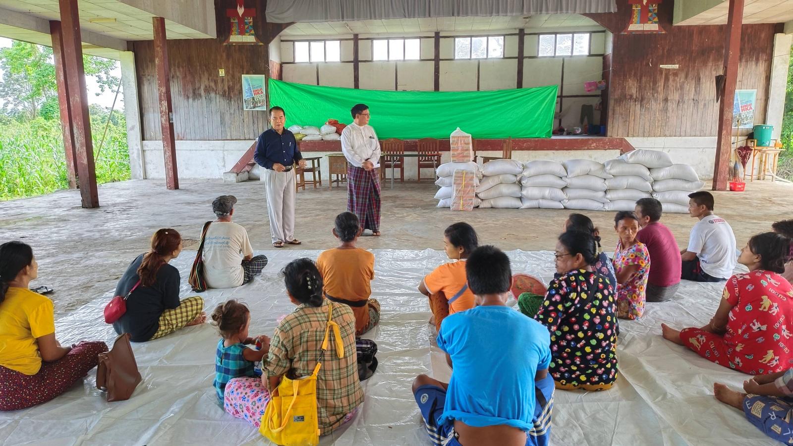 ထို့သို့ ထောက်ပံ့ပေးအပ်ရာတွင် ပြည်နယ်ဝန်ကြီးချုပ်၏ ကြီးကြပ်စီမံမှုဖြင့် မြို့မိ/ မြို့ဖများ ဖြစ်ကြသည့် ပြည်နယ်ညှိနှိုင်းဖျန်ဖြေရေးအဖွဲ့ဥက္ကဋ္ဌ(ဟောင်း) ဦးဖော်လားကမ်ဖန်၊ ဦးအလေးပါးနှင့် တာဝန်ရှိသူများက အဆိုပါ ကဇူးကျေးရွာအတွင်းရှိ နှစ်ခြင်းခရစ်ယာန်အသင်းတော် (ဆမားဇုံနယ်)ရုံး၌ ခေတ္တတိမ်းရှောင်နေထိုင်လျက်ရှိသော ပြည်သူ(၅၄)ဦးတို့အတွက် ကချင်ပြည်နယ်အစိုးရအဖွဲ့မှ ထောက်ပံ့သည့် ဆန်အိတ်(၂၅)အိတ်၊ ခေါက်ဆွဲခြောက်ဖာ (၁၀)ဖာတို့ကို ထောက်ပံ့ပေးအပ်ခဲ့ကြခြင်းဖြစ်သည်။