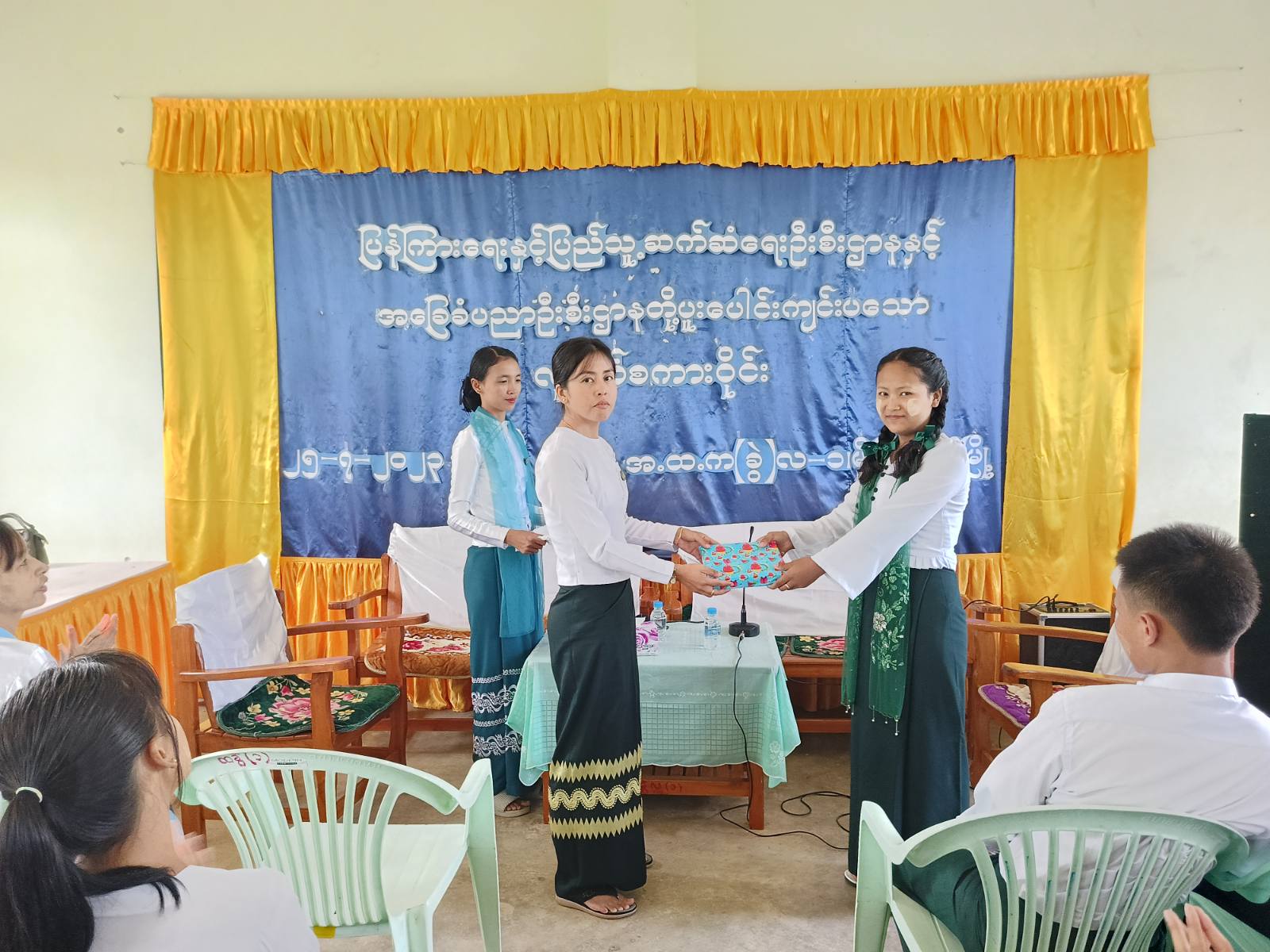 အဆိုပါ လူငယ်စကားဝိုင်းတွင် ဦးဆောင်ဆွေးနွေးခဲ့ကြသည့် ကျောင်းသား၊ ကျောင်းသူများအား ခရိုင်ပြန်ကြားရေးနှင့်ပြည်သူ့ဆက်ဆံရေးဦးစီးဌာနမှ ပေးအပ်သည့် အမှတ်တရ လက်ဆောင်ပစ္စည်းများကို ခရိုင်ပြန်ကြားရေးနှင့်ပြည်သူ့ဆက်ဆံရေးဦးစီးဌာန၊ လက်ထောက်ညွှန်ကြားရေးမှူး ဒေါ်မျိုးမျိုးသွယ်နှင့် တာဝန်ရှိသူတို့က ပေးအပ်ချီးမြှင့်ခဲ့ကြပြီး အခြေခံပညာအထက်တန်းကျောင်း (ခွဲ)လ-၁ ကျောင်းမှ ကျောင်းအုပ်ဆရာမကြီး ဒေါ်အေးအေးရီက ကျေးဇူးတင်စကား ပြန်လည် ပြောကြားခဲ့ကြောင်း သိရသည်။