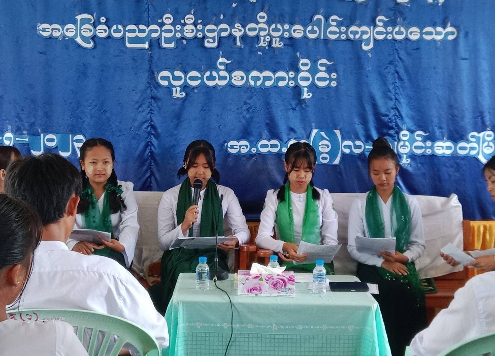 ထို့နောက် အခြေခံပညာအထက်တန်းကျောင်း(ခွဲ)လ-၁ ကျောင်းမှ Grade-9 ကျောင်းသူ မသီရိစံက “လူငယ်နှင့်စာဖတ်ခြင်း” ခေါင်းစဉ်ဖြင့်လည်းကောင်း၊ Grade-9 ကျောင်းသူ မသွန်းရတနာထက်က “လူငယ်နှင့်မျှဝေခြင်း” ခေါင်းစဉ်ဖြင့်လည်းကောင်း၊ Grade-11 ကျောင်းသူ မမိုးမမထွန်းက “လူငယ်နှင့် စိတ်ဓာတ်ရေးရာ”ခေါင်းစဉ်နှင့် Grade-11 ကျောင်းသူ မနန်းကေသီဝင်းက “လူငယ်နှင့်ဘဝရေးရာ” ခေါင်းစဉ်တို့ဖြင့် ဦးဆောင်ဆွေးနွေးခဲ့ကြပြီး တက်ရောက်လာကြသည့် ကျောင်းသား၊ ကျောင်းသူများက သိရှိလိုသည်များ မေးမြန်းခဲ့ကြရာ ဦးဆောင်ဆွေးနွေးသူများက ပြန်လည်ဆွေးနွေး ဖြေကြားခဲ့ကြသည်။