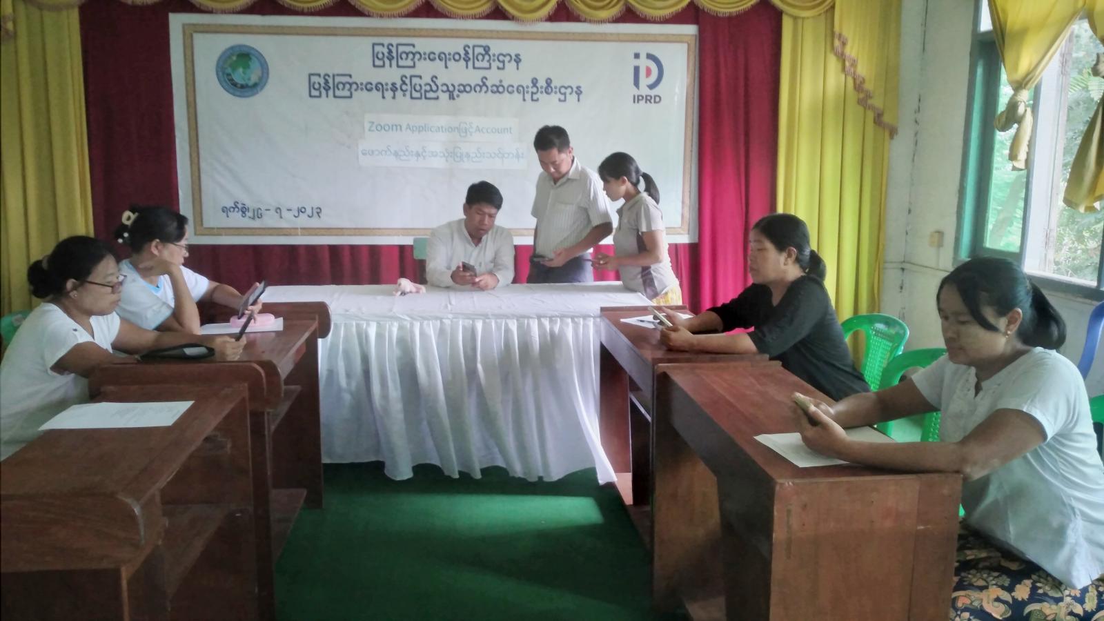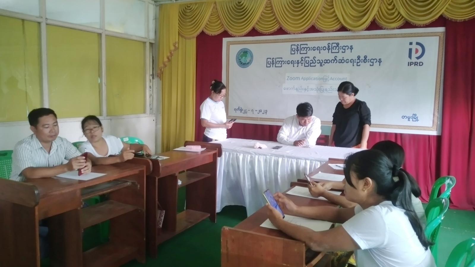 ဆက်လက်၍သင်တန်းကိုဆက်လက်ပို့ချရာ လက်ထောက်ညွှန်ကြားရေးမှူးမှ Zoom Application Account ဖောက်နည်းအဆင့်ဆင့်နှင့်အသုံးပြုနည်း စသည်တို့အားစာတွေ့ လက်တွေ့သင်ကြားပို့ချပေးလျက်ရှိသည်။