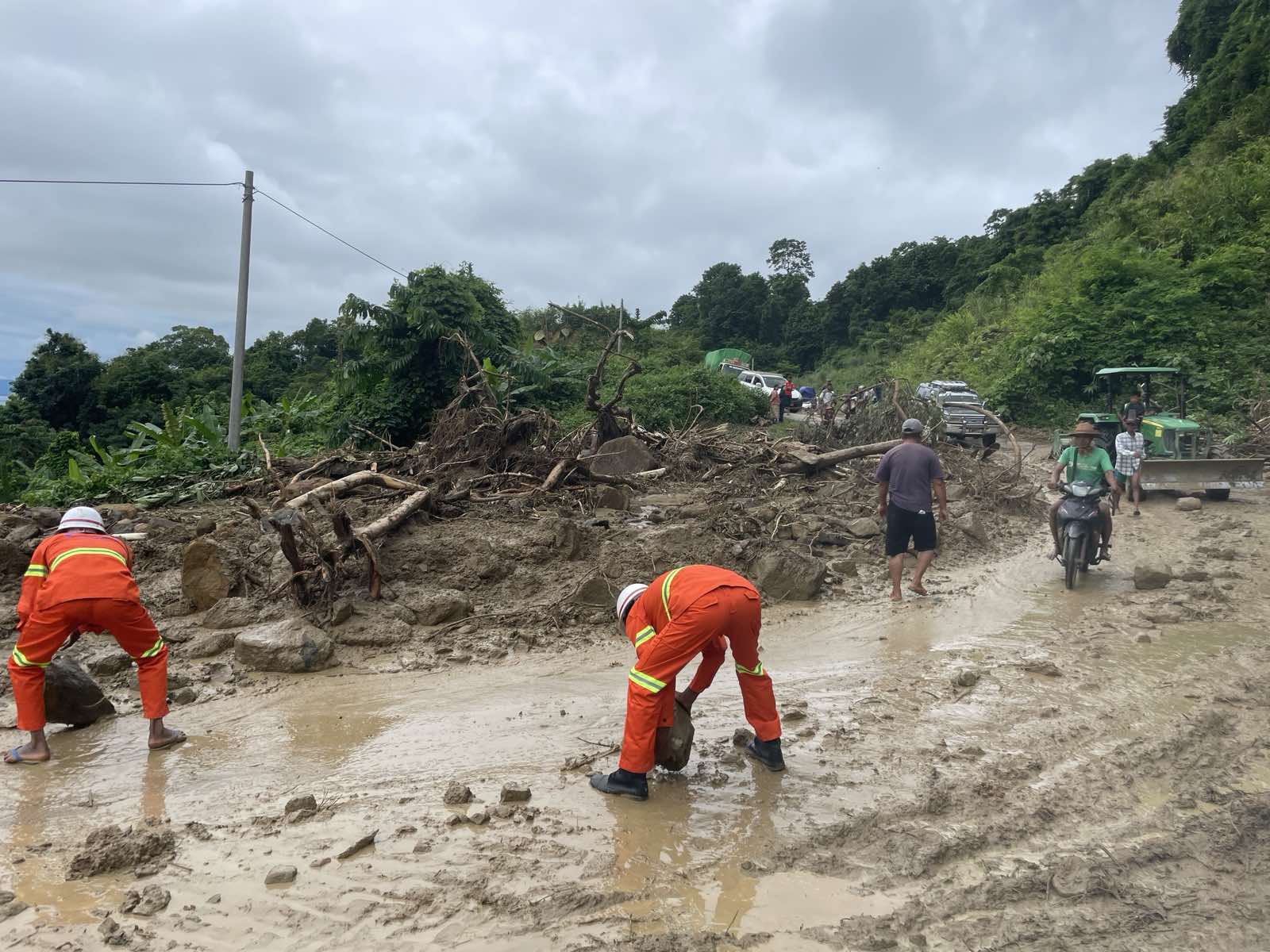 ထို့အတူ ဟိုပင်-နန့်မွန်း-ညောင်ပင်-ဟွေလုံ သွားကားလမ်းမပေါ်များတွင် ရေကျော်ခြင်းများနှင့် မိုင်တိုင်အမှတ် (၁၂)နှင့် (၁၃)အကြား ကားလမ်းအနီးရှိ ကမ်းပါးများပြိုကျမှုကြောင့် ကားလမ်းပေါ်သို့ မြေစာများ၊ ကျောက်တုံးကျော်ခဲများ၊ သစ်ပင်များလဲကျခဲ့ပြီး ကားလမ်းပိတ်ဆို့လျက်ရှိရာ နန့်မွန်းမြို့အုပ်ချုပ်ရေးမှူး၊ နယ်မြေခံရဲတပ်ဖွဲ့ဝင်များ၊ မီးသတ်တပ်ဖွဲ့ဝင်များ၊ ရပ်ကွက်ကျေးရွာအုပ်ချုပ်ရေးမှူးတို့က သွားရောက်ကြည့်ရှုစစ်ဆေးကြပြီး အဆိုပါကားလမ်းပေါ်မှ မော်တော်ယာဉ်များ လွယ်ကူစွာသွားလာနိုင်ရေးအတွက် အလျဉ်အမြန် ဆောင်ရွက်လျက်ရှိကြကြောင်း သိရသည်။
