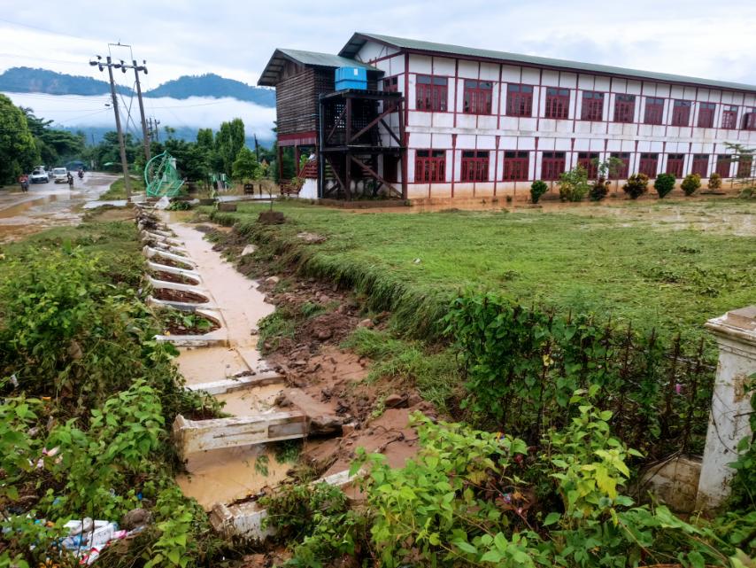 အဆိုပါမိုးရွာသွန်းမှုကြောင့် မမုန်ကိုင်ကျေးရွာအုပ်စု မိုင်းနောင်ကျေးရွာရှိ အထက(မိုင်းနောင်) ကျောင်းမှ အုတ်တံတိုင်း (၆) ပေအမြင့်ရှိ အလျားပေ (၁၃၀) ခန့်နှင့် သံပန်းတံခါး (၁)ချပ်တို့ ပြိုကျပျက်စီးခဲ့ကြောင်း သိရသည်။