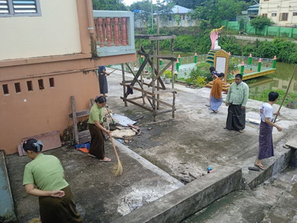 အဆိုပါ စုပေါင်းသန့်ရှင်းရေးကို အလင်းကောင်ရပ်ကွက်နှင့် ကြေးနန်းရပ်ကွက်များရှိ ချမ်းမြေ့ရောင်ခြည် ဘုန်းတော်ကြီးကျောင်း၊ ပရဟိတဘုန်းတော်ကြီးကျောင်း၊ မန္တလေးဘုန်းတော်ကြီးကျောင်း၊ နိသောကာရာမ ဘုန်းတော်ကြီးကျောင်းများတွင် ကျောင်းဝန်းအတွင်းရှိ ဘုရားရင်ပြင်တော်နှင့် ကျောင်းပရဝဏ်အတွင်း/အပြင်တို့တွင် အမှိုက်လှဲခြင်း၊ မြက်ပင်များရှင်းလင်းခြင်းများ စုပေါင်းသန့်ရှင်းရေး ပြုလုပ်ခဲ့ကြောင်း သိရှိရသည်။
