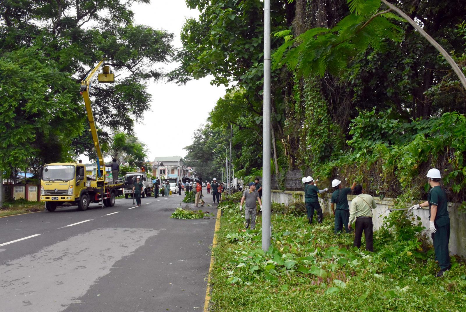 ထို့အပြင် ပြည်နယ်ဝန်ကြီးချုပ်သည် ပြည်နယ်သယံဇာတရေးရာဝန်ကြီးနှင့်အတူ နံနက် ၇ နာရီက မြို့သန့်ရှင်းသာယာလှပရေး၊ လူနေမှုစနစ်ကောင်းများပေါ်ထွန်းလာစေရေးနှင့် ပန်းမြို့တော် အဖြစ် ပီပြင်စွာ အကောင်အထည်ဖော်ဆောင်ရွက်နိုင်ရေးအတွက် Kachin State Clean & Green Team အဖွဲ့ဝင်များ၊ မြို့နယ်စည်ပင်သာယာအဖွဲ့ အရာထမ်း/ အမှုထမ်းများနှင့် မြစ်ကြီးနားမြို့ ဧရာ ရပ်ကွက် စိန်ပန်းလမ်းတစ်လျှောက် လမ်းဘေးဝဲ/ယာတို့တွင် စုပေါင်းသန့်ရှင်းရေးလုပ်ငန်း ဆောင် ရွက်ခဲ့ကြသည်။