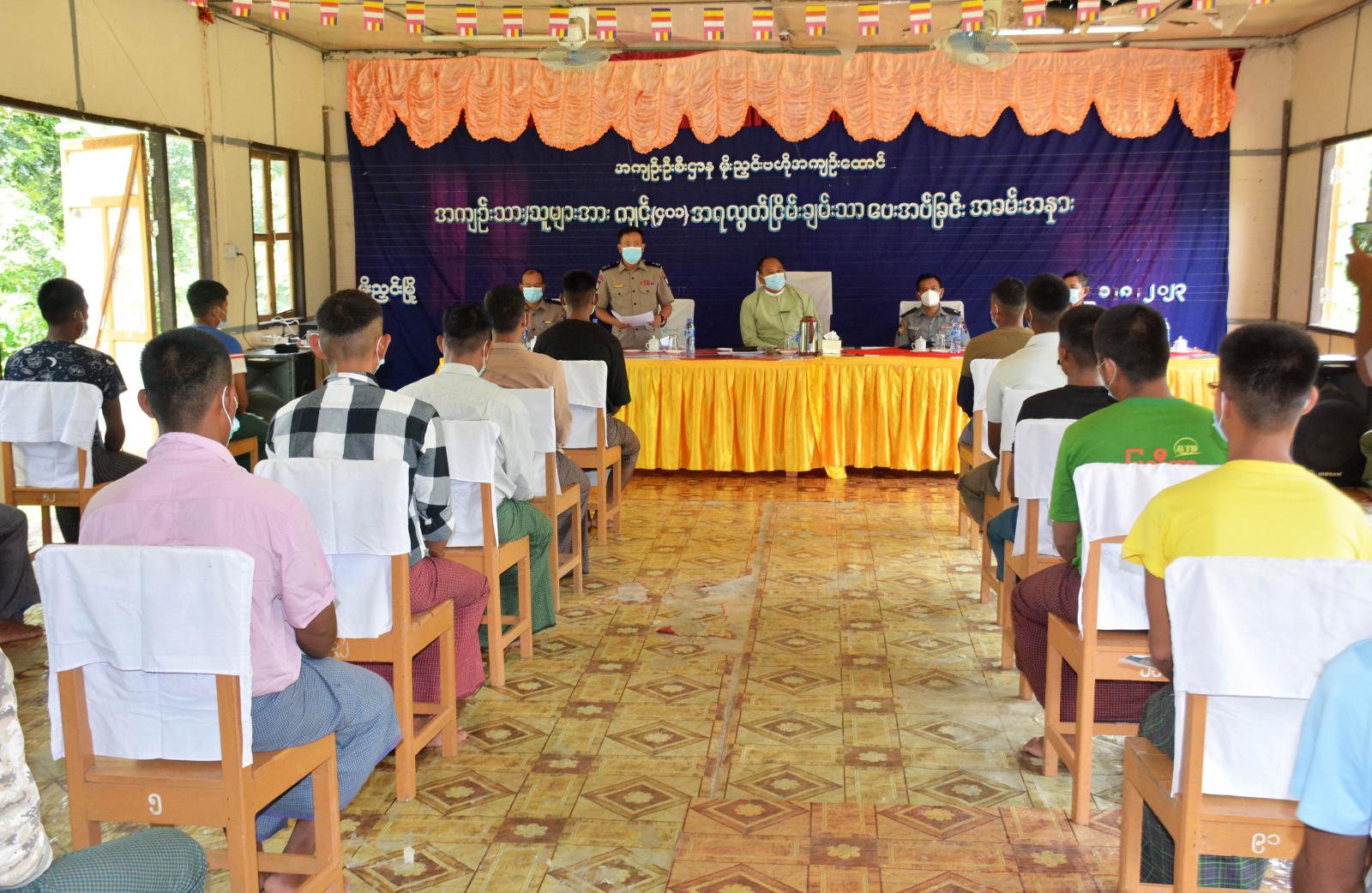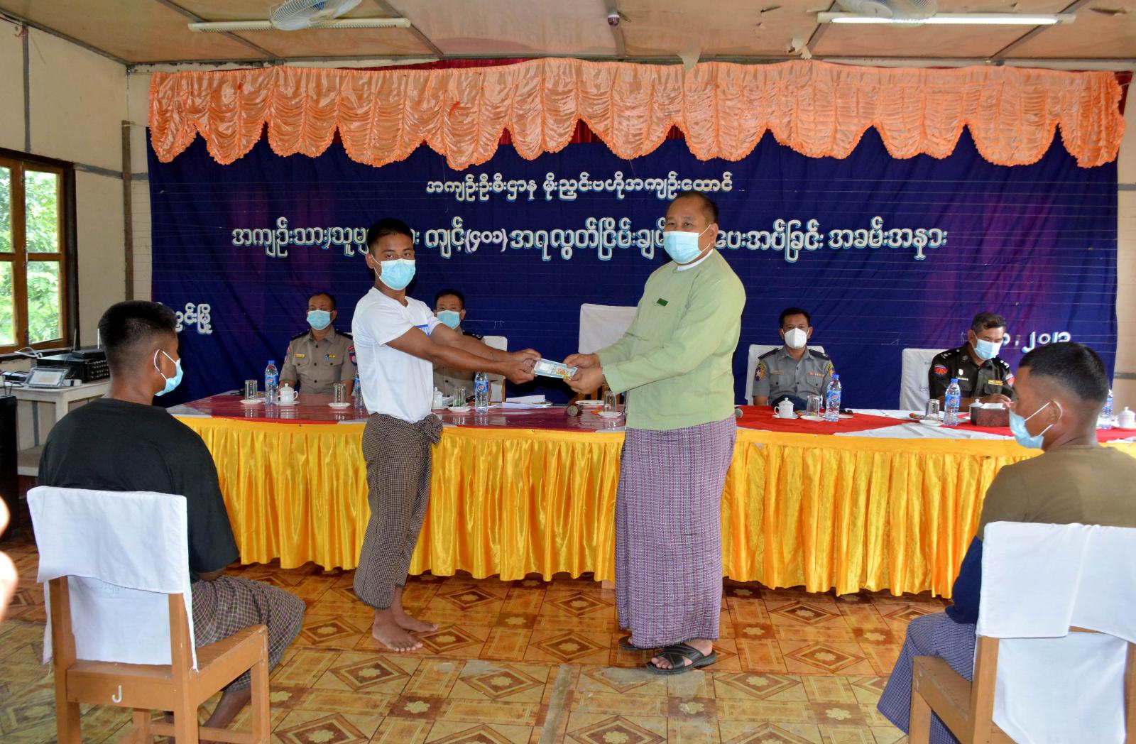 အဆိုပါ လွတ်ငြိမ်းချမ်းသာခွင့်ပြုခဲ့သည့် အကျဉ်းသားများကို နိုင်ငံတော်စီမံ အုပ်ချုပ်ရေးကောင်စီ၏ ပြစ်ဒဏ်လွတ်ငြိမ်းခွင့် အမိန့်အမှတ် (၅၁/၂၀၂၃)အရ ရာဇဝတ်ကျင့်ထုံး ပုဒ်မ-၄၀၁၊ ပုဒ်မခွဲ (၁)အရ စည်းကမ်းချက်ဖြင့် ယင်းတို့ကျခံရန်ကျန်ရှိသော ပြစ်ဒဏ်များအပေါ် လျှော့ပေါ့၍ ပြစ်ဒဏ်လွတ်ငြိမ်းချမ်းသာခွင့်ပြုခဲ့သည့် အကျဉ်းသားများကို ခရိုင်စီမံအုပ်ချုပ်ရေးအဖွဲ့ ဥက္ကဋ္ဌ ဦးညီညီလွင်၊ ဒုတိယခရိုင်ရဲတပ်ဖွဲ့မှူး ရဲမှူးအောင်ကျော်မိုး၊ အဖွဲ့ဝင် ခရိုင်လ.ဝ.ကမှူး ဒုတိယညွှန်ကြားရေးမှူး ဦးတင့်လွင်ဦးနှင့် မိုးညှင်းဗဟိုအကျဉ်းထောင် တာဝန်ခံအရာရှိ ဦးသန့်ဇင်ဝင်းနှင့် တာဝန်ရှိသူများက လွတ်ငြိမ်းချမ်းသာခွင့်ပြုပေးသည့် ရည်ရွယ်ချက်များနှင့် မိမိတို့ရပ်ရွာအကျိုးကို အများနည်းတူ ပူးပေါင်းပါဝင်ဆောင်ရွက်ပြီး အေးချမ်းစွာ ဆက်လက်နေထိုင်ကြစေရေး စသည်တို့ကို ဆုံးမဩဝါဒစကားများ အသီးသီးပြောကြားခဲ့ကြသည်။
