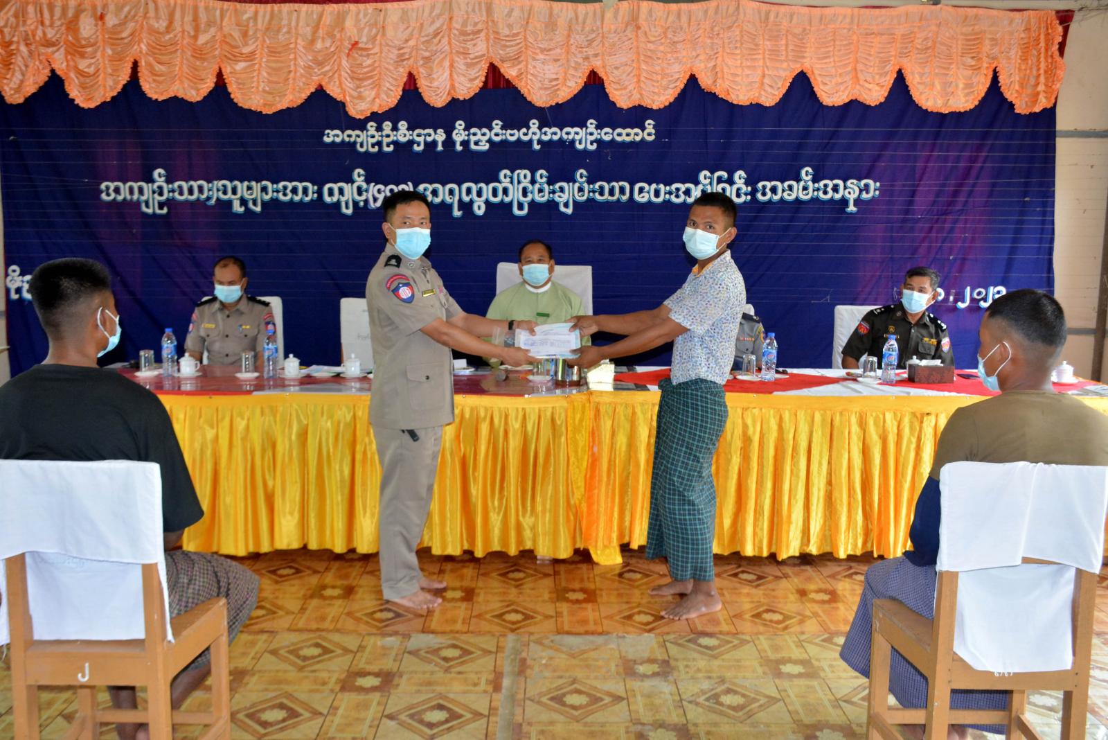 ထို့နောက် လွတ်ငြိမ်းချမ်းသာခွင့်ရရှိခဲ့သည့် အကျဉ်းသား (၃၀)ဦးအား ရာဇဝတ်ကျင့်ထုံး ပုဒ်မ-၄၀၁၊ ပုဒ်မခွဲ (၁)အရ ခံဝန်လက်မှတ်ရေးထိုးခြင်း၊ လွတ်ငြိမ်းခွင့်လက်မှတ်ပေးအပ်ခြင်း၊ မိုးညှင်းဗဟိုအကျဉ်းထောင်မှ ခရီးစရိတ်၊ စားစရိတ်များ ပေးအပ်ခြင်းနှင့် ပြည်နယ်အစိုးရအဖွဲ့မှ တစ်ဦးလျှင် ထောက်ပံ့ငွေကျပ် (၁၀၀၀၀)နှုန်းစီဖြင့်လည်းကောင်း၊ ခရိုင်စီမံအုပ်ချုပ်ရေးအဖွဲ့မှ တစ်ဦးလျှင် ငွေကျပ်(၅၀၀၀)နှုန်းဖြင့်လည်းကောင်း တာဝန်ရှိသူများက အသီးသီး ထောက်ပံ့ ပေးအပ်ပြီးနောက် မိမိဒေသသို့ အဆင်ပြေချောမွေ့စွာ သွားလာနိုင်ရေးအတွက် ကူညီဆောင်ရွက်ပေးခဲ့ကြောင်း သိရသည်။