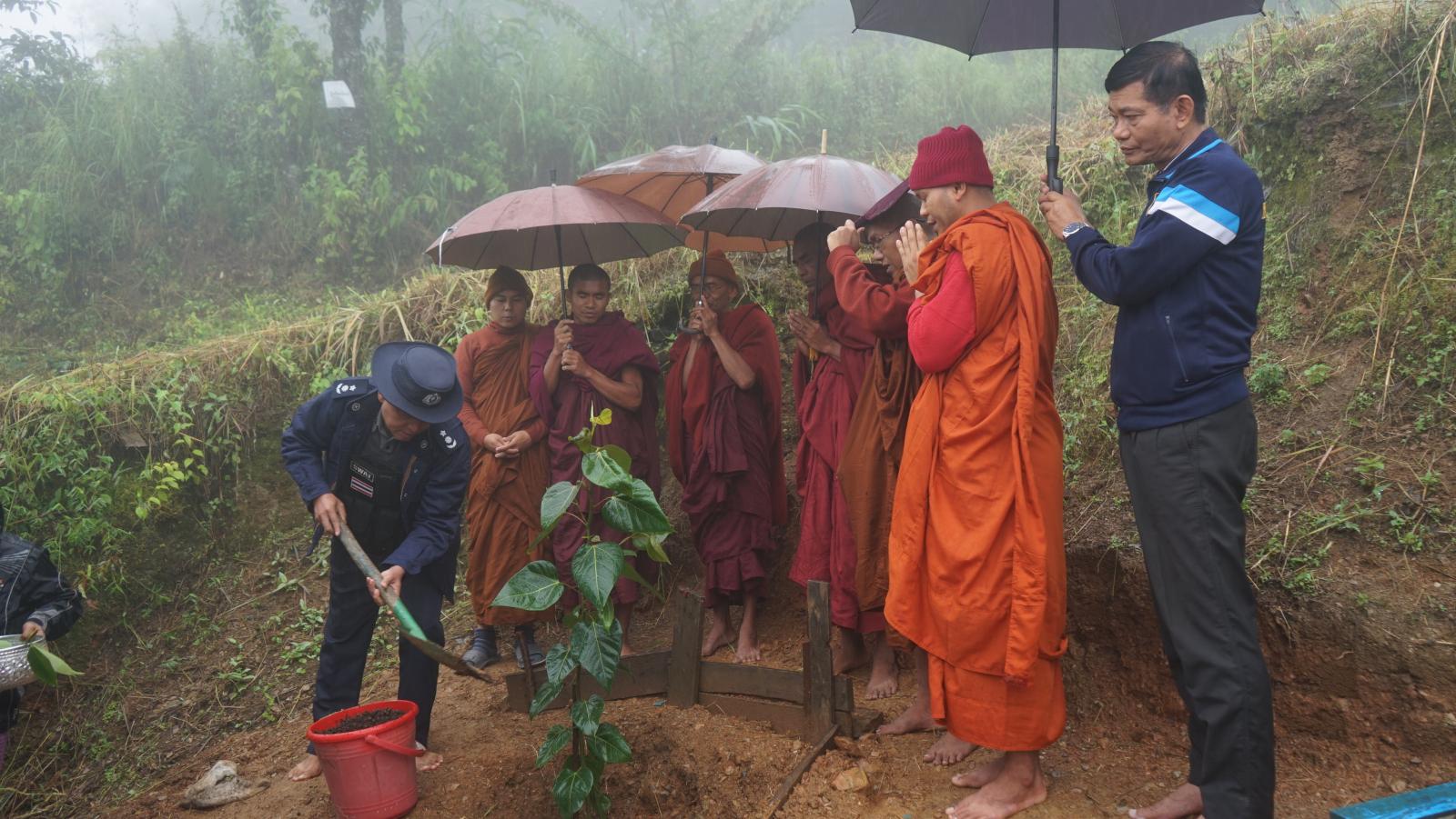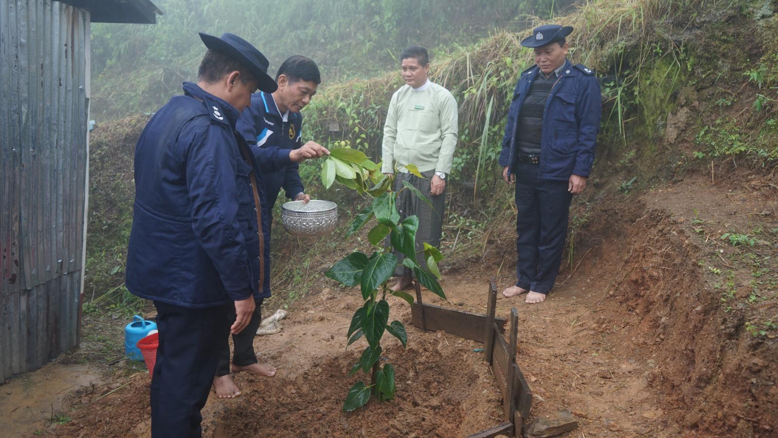ဓမ္မစကြာခါတော်နေ့ အထိမ်းအမှတ်အဖြစ် နံနက် ၉ နာရီအချိန်က ဖလမ်းမြို့၊ တလန်လိုရပ်ကွက်၊ ဇမ္ဗူအေးစေတီတော် ပရဝုဏ်အတွင်း ဆရာတော်သံဃာတော်များ၊ ဖလမ်းခရိုင် စီမံအုပ်ချုပ်ရေးအဖွဲ့ဥက္ကဋ္ဌ ဦးစောထွန်းဝင်းနှင့် အဖွဲ့ဝင်များ၊ မြို့နယ်စီမံအုပ်ချုပ်ရေးအဖွဲ့ဥက္ကဋ္ဌ၊ အဖွဲ့ဝင်(၁) ဗိုလ်မှူး ညီညီအောင်နှင့် အဖွဲ့ဝင်များက ဗောဓိညောင်ပင်အား စိုက်ပျိုးခဲ့ကြသည်။