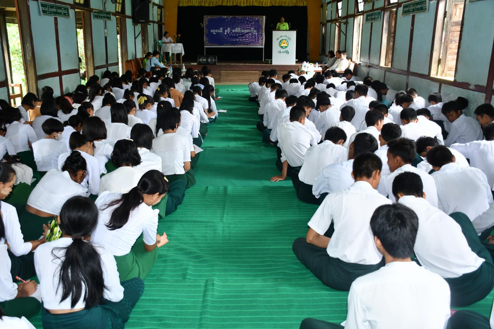 အဆိုပါအသိပညာပေးဟောပြောပွဲတွင် ကျောင်းအုပ်ဆရာမကြီးဒေါ်နန်ရာက အဖွင့်အမှာ စကားပြောကြားခဲ့ပြီး ခရိုင်ပြန်ကြားရေးနှင့်ပြည်သူ့ဆက်ဆံရေးဦးစီးဌာနမှ လက်ထောက် ညွှန်ကြားရေးမှူး ဦးအောင်ကျော်ထွန်းက လူငယ်နှင့်ဗလငါးတန်ဖွံ့ဖြိုးရေးအကြောင်း အသိပညာ ပေးဟောပြောခဲ့သည်။
