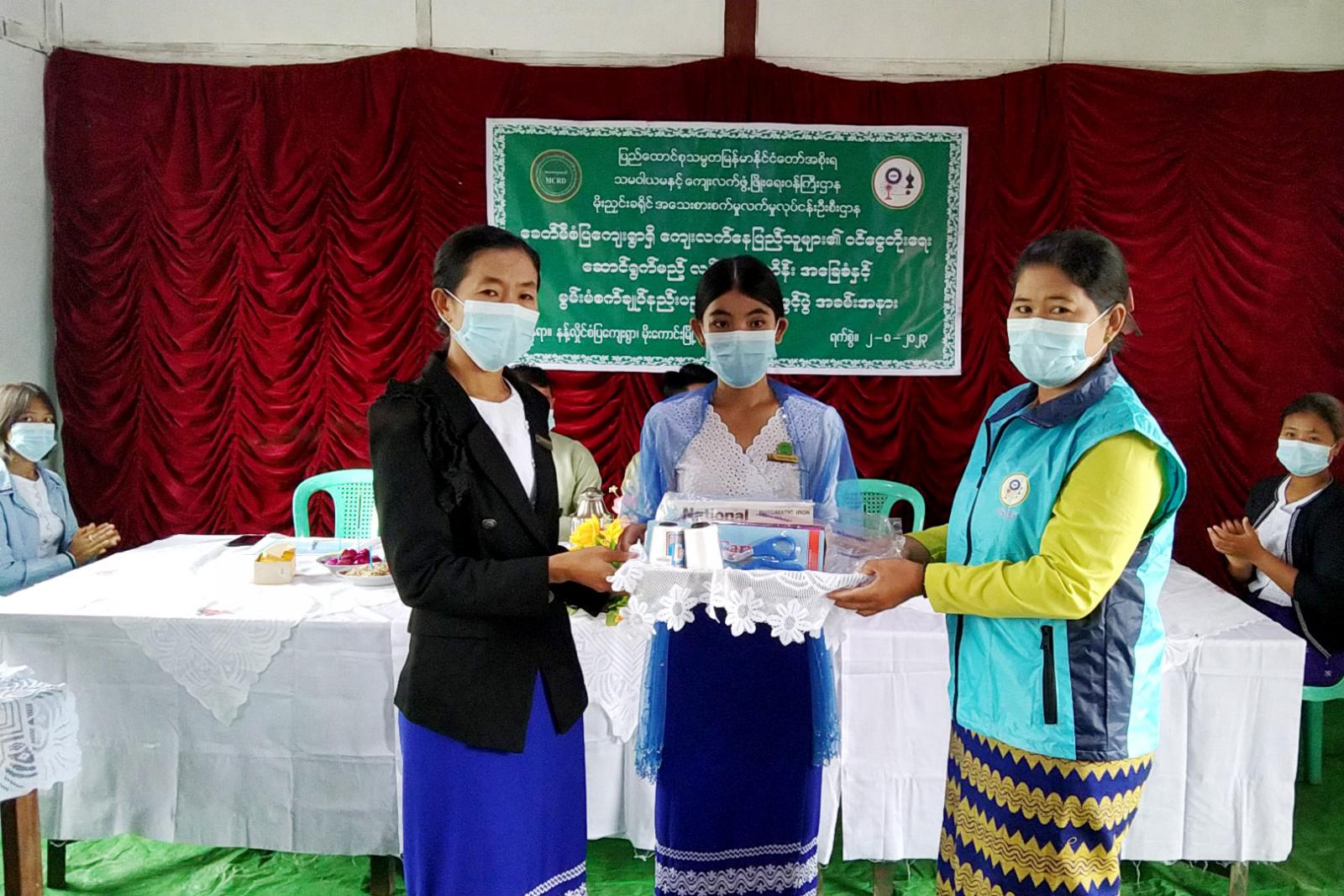 ဖွင့်ပွဲအခမ်းအနားတွင် မိုးကောင်းမြို့နယ်ကျေးလက်ဒေသ ဖွံ့ဖြိုးတိုးတက်ရေးဦးစီးဌာန မြို့နယ်ဦးစီးမှူး ဦးကျော်သူဝင်းက အဖွင့်အမှာစကား ပြောကြား၍ ခရိုင်အသေးစားစက်မှုလက်မှု လုပ်ငန်းဦးစီးဌာနမှ ခရိုင်ဦးစီးမှူး ဒေါ်ယဉ်ယဉ်မြင့်က သင်တန်းနှင့် ပတ်သက်သည်များကို ရှင်းလင်း ပြောကြားပြီး အပ်ချုပ်စက်သင်တန်းသူများအား သင်ထောက်ကူပစ္စည်းပေးအပ်ခဲ့သည်။