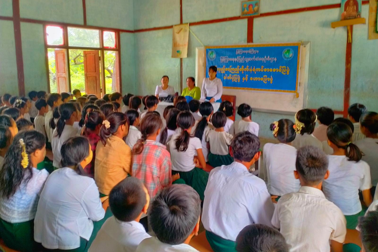 ရှေးဦးစွာ ကျောင်းအုပ်ဆရာမကြီး ဒေါ်သန်းသန်းဌေးက အမှာစကားပြောကြားပြီး ပြန်ကြားရေးနှင့်ပြည်သူ့ဆက်ဆံရေးဦးစီးဌာနမှ ဒုတိယဦးစီးမှူး ဒေါ်ဝင်းမေထွန်းက ကလေးအလုပ်သမား၏ အဓိပ္ပါယ်၊ ကလေးအလုပ်သမားများ၏ အလုပ်ချိန်ကန့်သတ်ချက်၊ ကလေးသူငယ်အခွင့်အရေးများဆိုင်ရာဥပဒေ စသည့် အကြောင်းအရာများကို ရှင်းလင်းပြောကြားသည်။