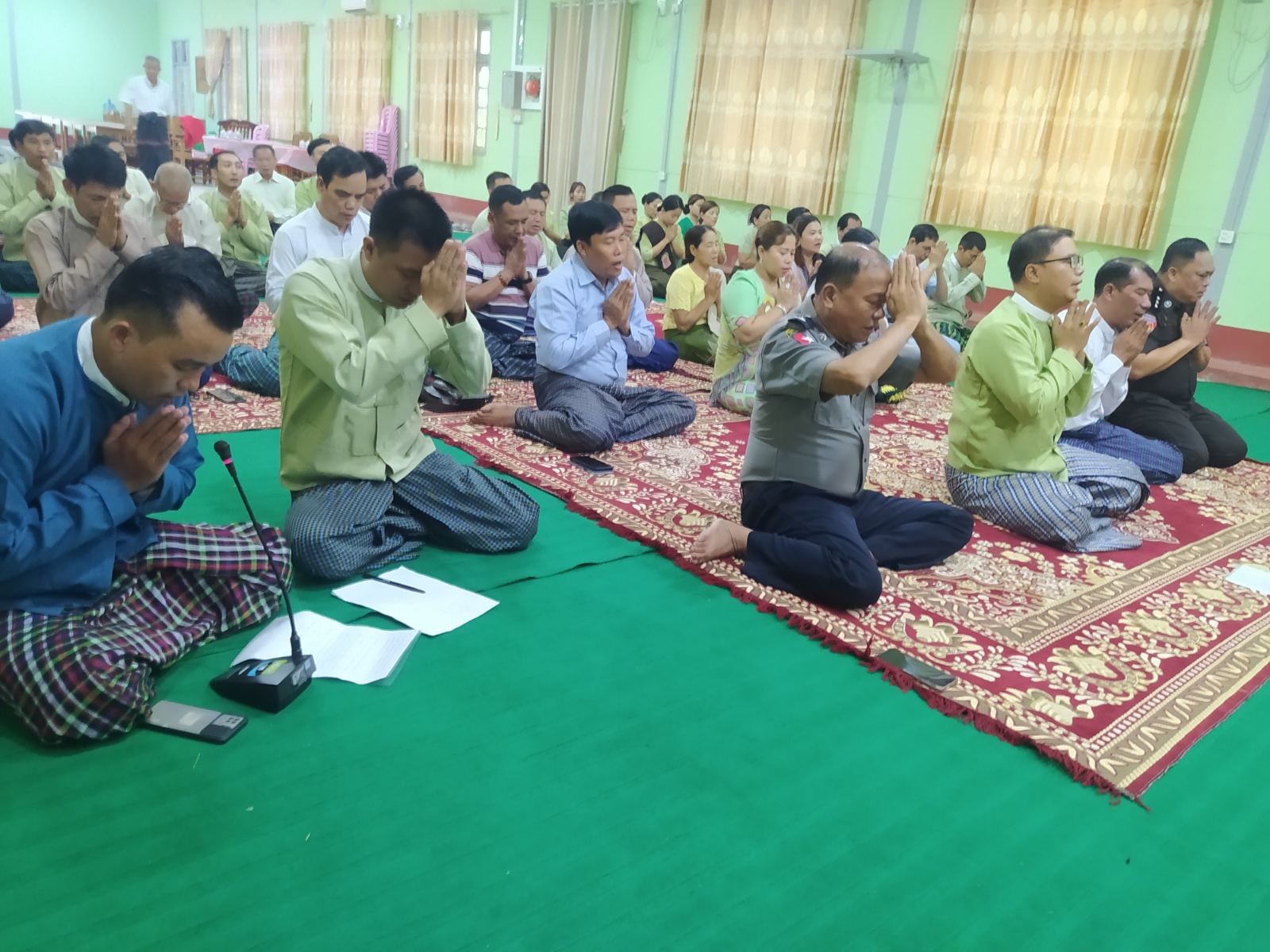 ယင်းနောက် မြို့နယ်သံဃနာယကအဖွဲ့ဥက္ကဋ္ဌ အဂ္ဂမဟာသဒ္ဓမ္မဇောတိကဓဇ ဘွဲ့တံဆိပ်တော်ရ ဘဒ္ဒန္တကဝိသာရဆရာတော်ဘုရားထံမှ ငါးပါးသီလခံယူဆောက်တည်ကြပြီး ကြွရောက်တော်မူကြသည့် ဆရာတော်သံဃာတော်များထံမှ ပရိတ်တရားတော်များ နာယူကြည်ညိုကြသည်။