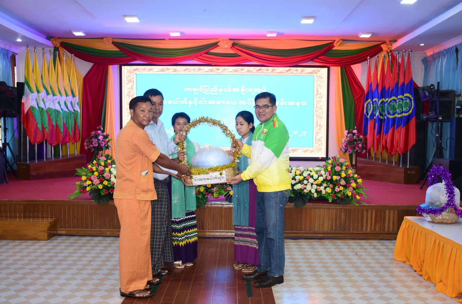 အခမ်းအနားတွင် ပြည်နယ်ဝန်ကြီးချုပ် ဦးခက်ထိန်နန်က ပြည်နယ်အတွင်း စားရေရိက္ခာဖူလုံ စေရေးအတွက် စိုက်ပျိုးရေးလုပ်ငန်းများတွင် မိုးစပါးအပြင် သီးထပ်များဖြင့် စွမ်းအားပြည့်စိုက်ပျိုး လာနိုင်ရေးသွင်းအားစုများ ကြိုးပမ်းထောက်ပံ့ပေးအပ်လျက်ရှိသည့်အပြင် သား/ငါးထုတ်လုပ်မှုကဏ္ဍ တွင်လည်း ပြည်နယ်တွင်းဖူလုံစေရေးသာမက နိုင်ငံအတွက်ပါ ဖူလုံစေရေးအတွက် ရည်မှန်းချက် ထား၍လိုအပ်သည့်သွင်းအားစုများကို ထောက်ပံ့နိုင်ရေး စီမံဆောင်ရွက်ထားပြီးဖြစ်ပါကြောင်း၊ သို့ဖြစ်ပါ၍ ယနေ့အခမ်းအနားတွင် နောင်စပ်အင်းနှင့် တာလောကြီးအင်း (၂)အင်းအတွက် လိုအပ်သော ငါးသားပေါက်များကို ထောက်ပံ့ပေးအပ်သွားမည်ဖြစ်သည့်အပြင် ငါးလုပ်ငန်းဦးစီးဌာနမှလည်း အင်းများအတွက် သွင်းအားစုဖြစ်သည့် ရေပေါ်အစာတောင့် အစာအိတ်များကို မွေးမြူရေးတောင်သူများ ထံ ပေးအပ်သွားမည်ဖြစ်ပါကြောင်း ပြောကြားသည်။