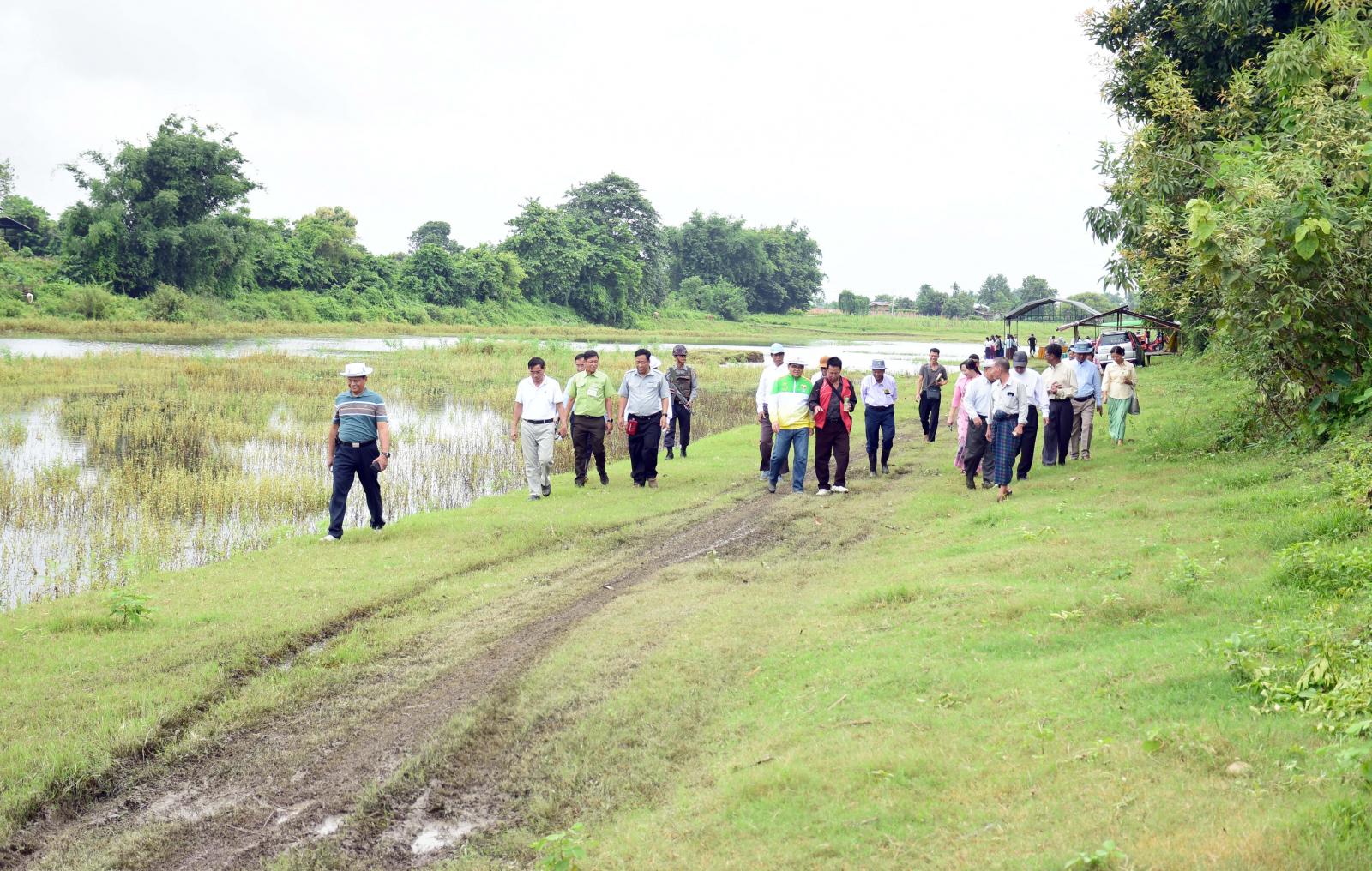 ယင်းနောက် မြစ်ကြီးနားမြို့ ပမ္မတီးရပ်ကွက်အတွင်းရှိ ကွင်းအမှတ် (၇၁) ပမ္မတီးအနောက် မြောက်ကွင်း တောင်သူဦးချစ်ဆွေ၏ လယ် ၅ ဧကနှင့် ကွင်းတစ်ခုလုံးရှိ ဧကပေါင်း ၅၆ ဧကအတွင်း မိုးစပါးစိုက်ပျိုးနေမှု အခြေအနေများကို ကြည့်ရှုစစ်ဆေးခဲ့ကြပြီး စိုက်ပျိုးရေးလုပ်ငန်းနှင့် စပ်လျဉ်း၍ လိုအပ်ချက်များကို မေးမြန်းဆွေးနွေးကာ မိုးစပါးရိတ်သိမ်းချိန် သီးထပ်စိုက်ပျိုးနိုင်ရေး လိုအပ်သည့် စိုက်ပျိုးရေ၊ ကျွဲနွားအန္တရာယ်ကာကွယ်ရေး ခြံဝင်းခတ်ပေးနိုင်ရေးနှင့် မျိုးစေ့များ ထောက်ပံ့ပေးနိုင် ရေး ညှိနှိုင်းပေါင်းစပ်ဆောင်ရွက်ပေးခဲ့ကာ တောင်သူဦးချစ်ဆွေ၏ ခြံ၌ နို့စားနွား ၇ ကောင် မွေးမြူထားရှိမှုကို ကြည့်ရှုစစ်ဆေး၍ လိုအပ်သည်များ ကူညီပေးနိုင်ရေး ညှိနှိုင်းပေါင်းစပ်ဆောင်ရွက်ပေး ခဲ့သည်။