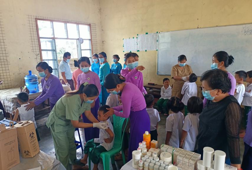 ထို့နောက် KG ကလေးများအား ဒုတိယအကြိမ် Covid ကာကွယ်ဆေးထိုးနှံပေးခြင်း၊ သွားတိုက်တံများပေးအပ်ခြင်း၊ သွားပိုးစားသော ကျောင်းသား/ကျောင်းသူများအား သွားနုတ်ပေးခြင်း၊ ကိုယ်အလေးချိန်တိုင်းခြင်း၊ အရပ်တိုင်းခြင်း၊ တကိုယ်ရည်သန့်ရှင်းမှု စစ်ဆေးခြင်းများ ဆောင်ရွက်ပေးခဲ့ပြီး လိုအပ်သည့်ဆေးဝါးများ အခမဲ့ပေးအပ်ခဲ့ကြောင်း သိရသည်။