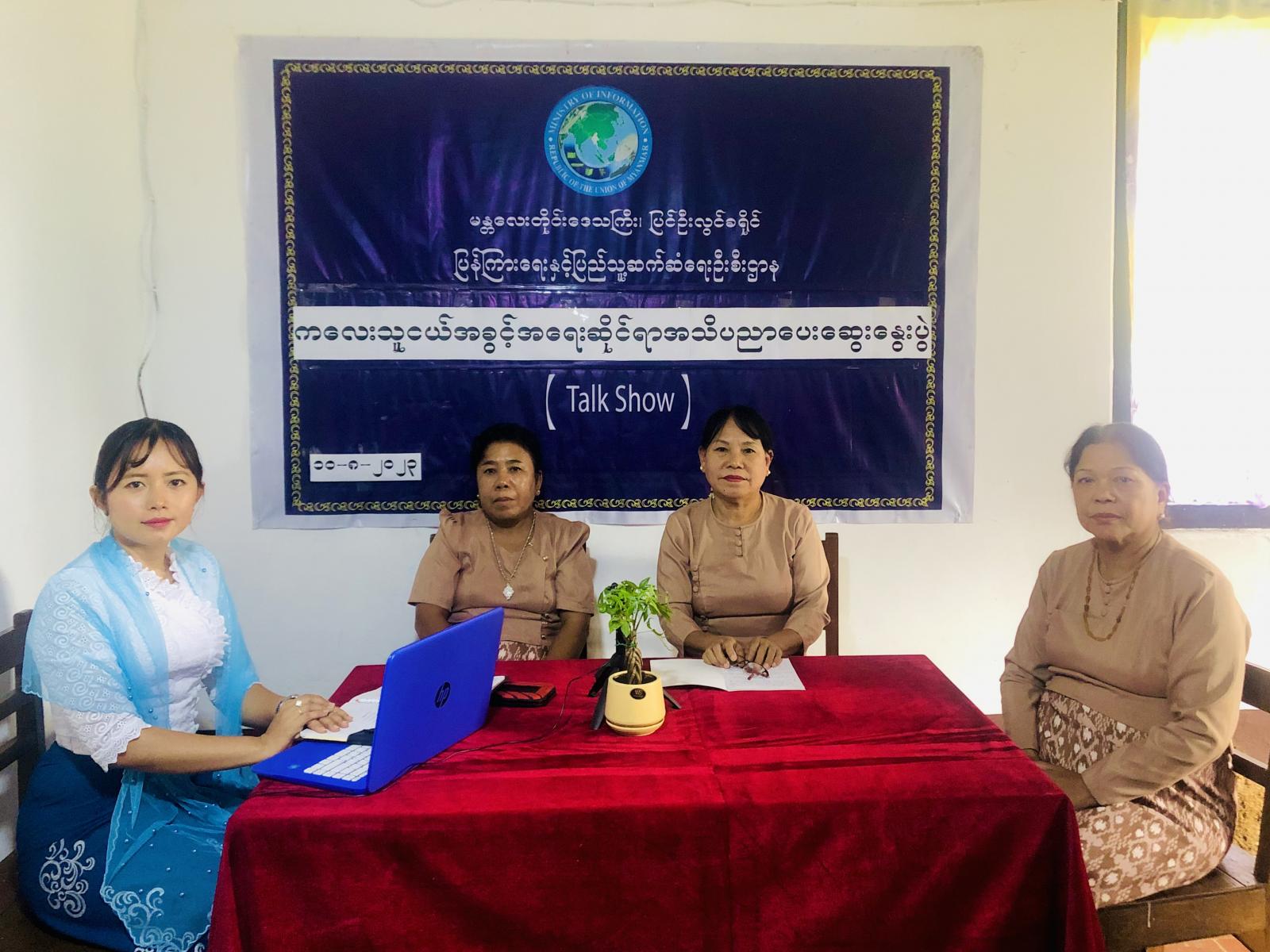 အဆိုပါ အသိပညာပေး Talk Show တွင် ပြန်ကြားရေးနှင့်ပြည်သူ့ဆက်ဆံရေးဦးစီးဌာနမှ ဦးစီးအရာရှိ ဒေါ်ယမင်းလှိုင်က အသိပညာပေး Talk Show ကျင်းပရခြင်း ရည်ရွယ်များအား ရှင်းလင်းပြောကြားပြီး Women Club ဥက္ကဋ္ဌ ဒေါ်ကြူကြူက အမျိုးသမီးများ အကြမ်းဖက်ခံရမှု ကာကွယ်ရေးဆိုင်ရာအကြောင်းအရာများ၊ အကြမ်းဖက်မှုအမျိုးအစားများ၊ အကြမ်းဖက် ခံရသူများအား စိတ်ပိုင်းဆိုင်ရာ နှစ်သိမ့်ဆွေးနွေးရာတွင် လိုက်နာသင့်သည့် စည်းမျဉ်းများ၊ ဥပဒေအရ ကာကွယ်ပေးထားသည့် ပုဒ်မများအား လည်းကောင်း၊ ဒုတိယဥက္ကဋ္ဌ ဒေါ်သီတာက ကလေးသူငယ်အခွင့်အရေးဆိုင်ရာများ၊ ကလေးအလုပ်သမားပပျောက်ရေးနှင့် ကလေးသူငယ် များ၏ ဘဝလုံခြုံစိတ်ချရေး၊ ကျောင်းနေရွယ်ကလေးများ ကျောင်းသို့ရောက်ရှိရေး များအား အသိပညာပေး ဆွေးနွေးခဲ့သည်။