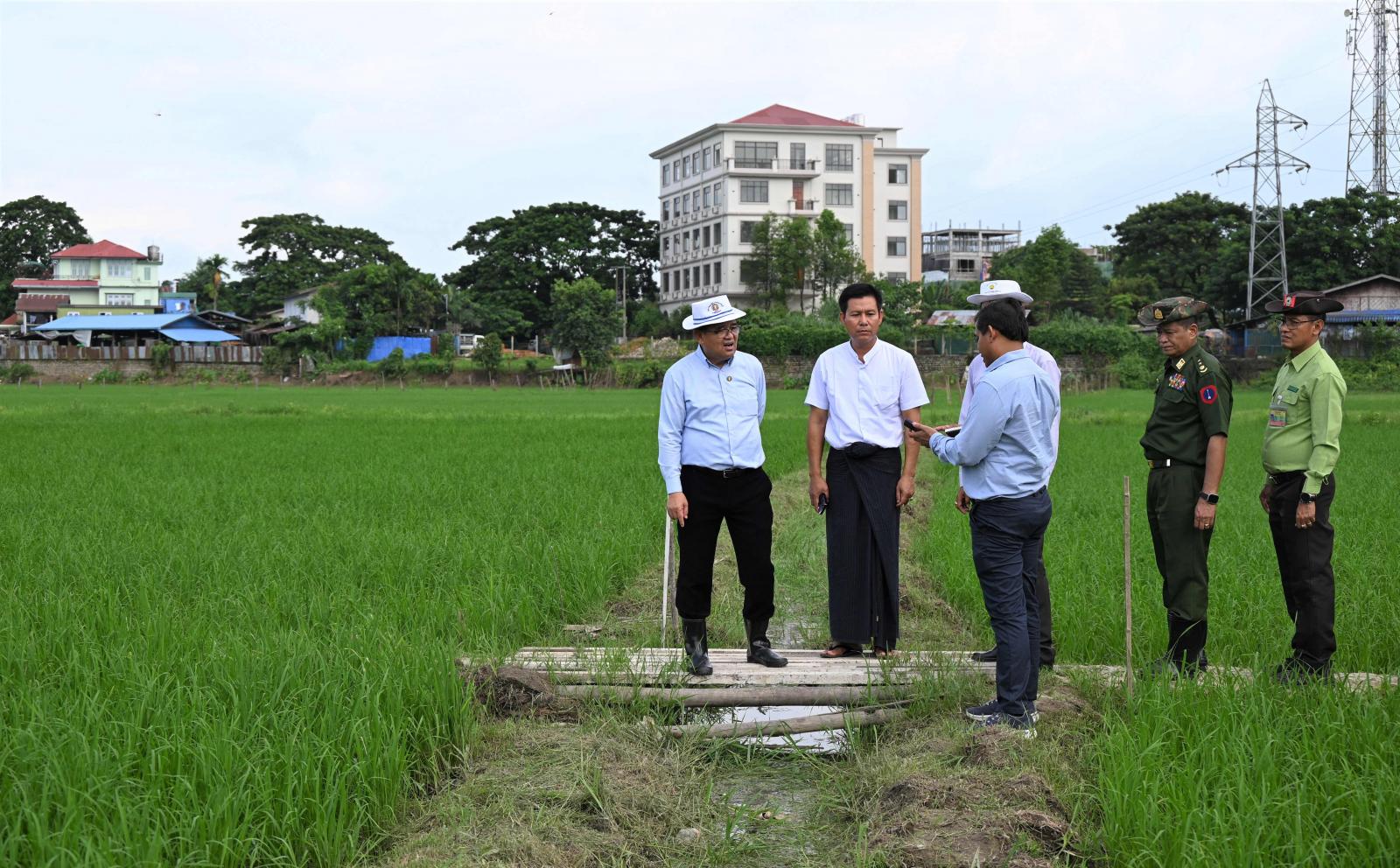 ကချင်ပြည်နယ်အတွင်း မိုးစပါးစိုက်ပျိုးမှု ရည်မှန်းချက်ပြည့်မီကျော်လွန်အောင် စိုက်ပျိုးနိုင်ရေးနှင့် ပန်းတိုင်အထွက်နှုန်း တိုးပွားစေရေးအတွက် စိုက်ပျိုးရေ အပါအဝင် သွင်းအားစုများကို ဖြည့်ဆည်းပေးနိုင်ရေး ပြည်နယ်ဝန်ကြီးချုပ် ဦးခက်ထိန်နန်သည် တာဝန်ရှိသူများနှင့်အတူ ယမန်နေ့မွန်းလွဲ ၁ နာရီခွဲက မြစ်ကြီးနားမြို့ရှိ မိုးစပါးစိုက် ဧကများ စိုက်ပျိုးဆောင်ရွက်ထားရှိမှုကို ကွင်းဆင်းစစ်ဆေးခဲ့ကြသည်။