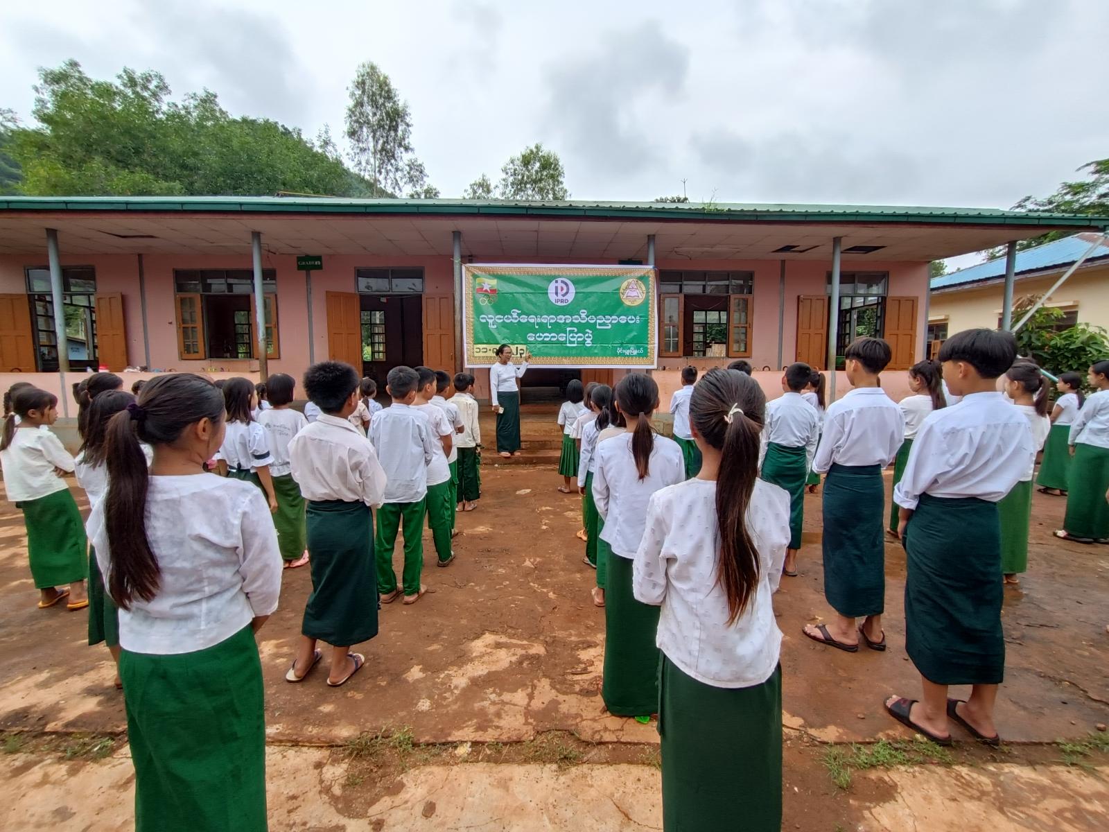 ရှေးဦးစွာ ကျောင်းအုပ်ဆရာမကြီး ဒေါ်နန်းရင်က လူငယ်နှင့်ပတ်သက်သည့် သိသင့်သိထိုက်သည့် အကြောင်းအရာများ ဟောပြောပြီး အားကစားနှင့်ကာယပညာဦးစီးဌာန၊ နည်းစနစ်မှူး ဦးကျော်ဝင်းက လူငယ်နှင့်အားကစားအကြောင်းအရာများ ဟောပြောခဲ့သည်။ ဆက်လက်၍ ပြန်ကြားရေးနှင့်ပြည်သူ့ဆက်ဆံရေးဦးစီးဌာန၊ မြို့နယ်ဦးစီးမှူး ဒေါ်ခင်လေးလေးယုက အာဇာနည်ခေါင်းဆောင် ဗိုလ်ချုပ်အောင်ဆန်း၏ငယ်ဘဝနှင့် လွတ်လပ်ရေးရရှိအောင် ကြိုးပမ်းမှုများအကြောင်း ဟောပြောခဲ့သည်။ ထို့နောက် အားကစားနှင့်ကာယပညာဦးစီးဌာန နည်းစနစ်မှူး ဦးကျော်ဝင်းက ကျောင်းအုပ်ဆရာကြီး ဒေါ်နန်းရင်ထံ အားကစားပစ္စည်းများထောက်ပံ့ပေးအပ်ခဲ့ကြောင်း သိရသည်။