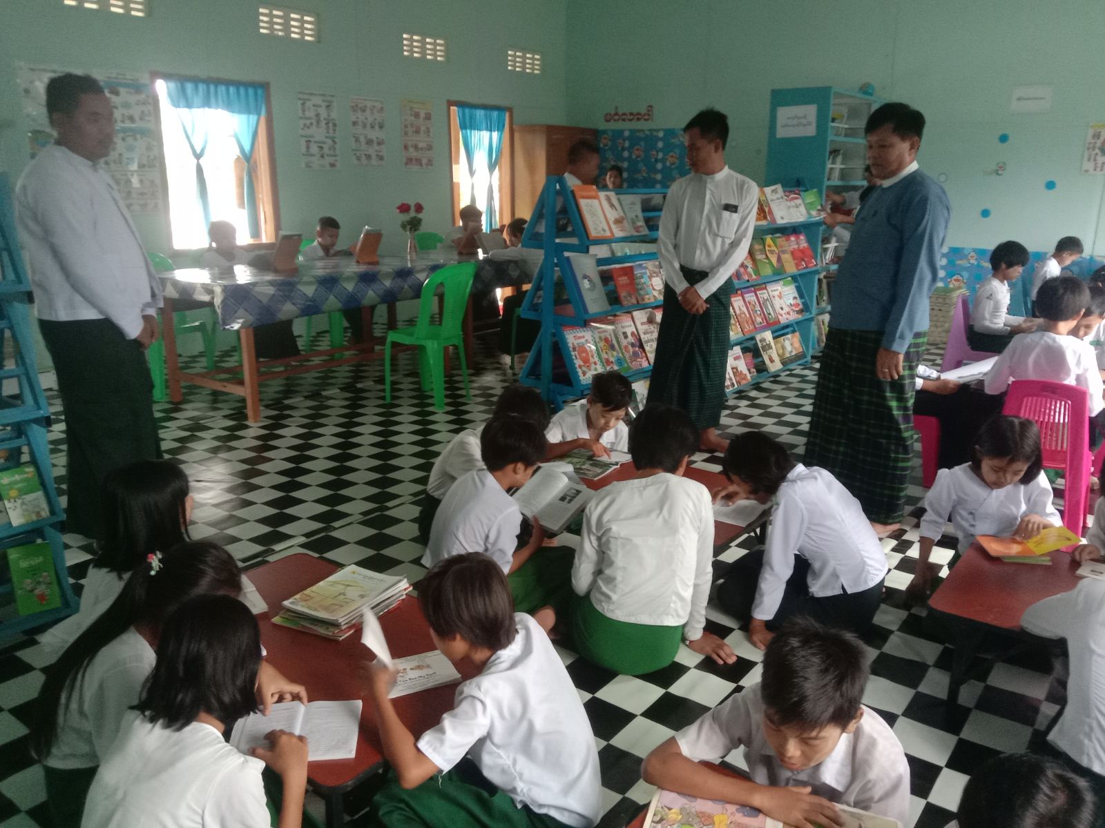 ဆက်လက်ပြီး မြို့နယ်ပညာရေးမှူး ဦးသန်းအောင်က ပညာရေးလက်တွေ့ဖွံ့ဖြိုးရေးလုပ်ငန်းနှင့် ပတ်သက်၍လည်းကောင်း၊ ကျောင်းအုပ်ဆရာကြီးဦးဇူမိုးဦးက ကျောင်းစာကြည့်တိုက် ဖွင့်လှစ်ရခြင်းနှင့်ပတ်သက်၍ ရှင်းလင်းပြီးစာကြည့်တိုက်အတွက် လှူဒါန်းပေးအလှူရှင်များအား တာဝန်ရှိသူများကဂုဏ်ပြုမှတ်တမ်းလွှာများပေးအပ်ကာ Grade-(5)(11)ကျောင်းသူကျောင်းသား လေးများက“ထာဝရမြန်မာ”တေးသရုပ်ဖော်ဖြင့်လည်းကောင်း၊ “ဇာတိမာန်” သီချင်းဖြင့်လည်း သီဆိုကပြဖျော်ဖြေခဲ့သည်။ “ပညာပျိုးခင်း” ကျောင်းစာကြည့်တိုက်သည် အလျား ပေ(၄၀)၊ အနံ(၂၄)ပေ၊ သွပ်မိုး၊အုတ်ကာ၊ တမံတလင်းခင်းဖြစ်ပြီး သုတစာအုပ်(၇၀၀)အုပ်၊ ရသစာအုပ် (၂၃၄)အုပ်ဖြင့် စတင်ဖွင့်လှစ်ခဲ့သည်။