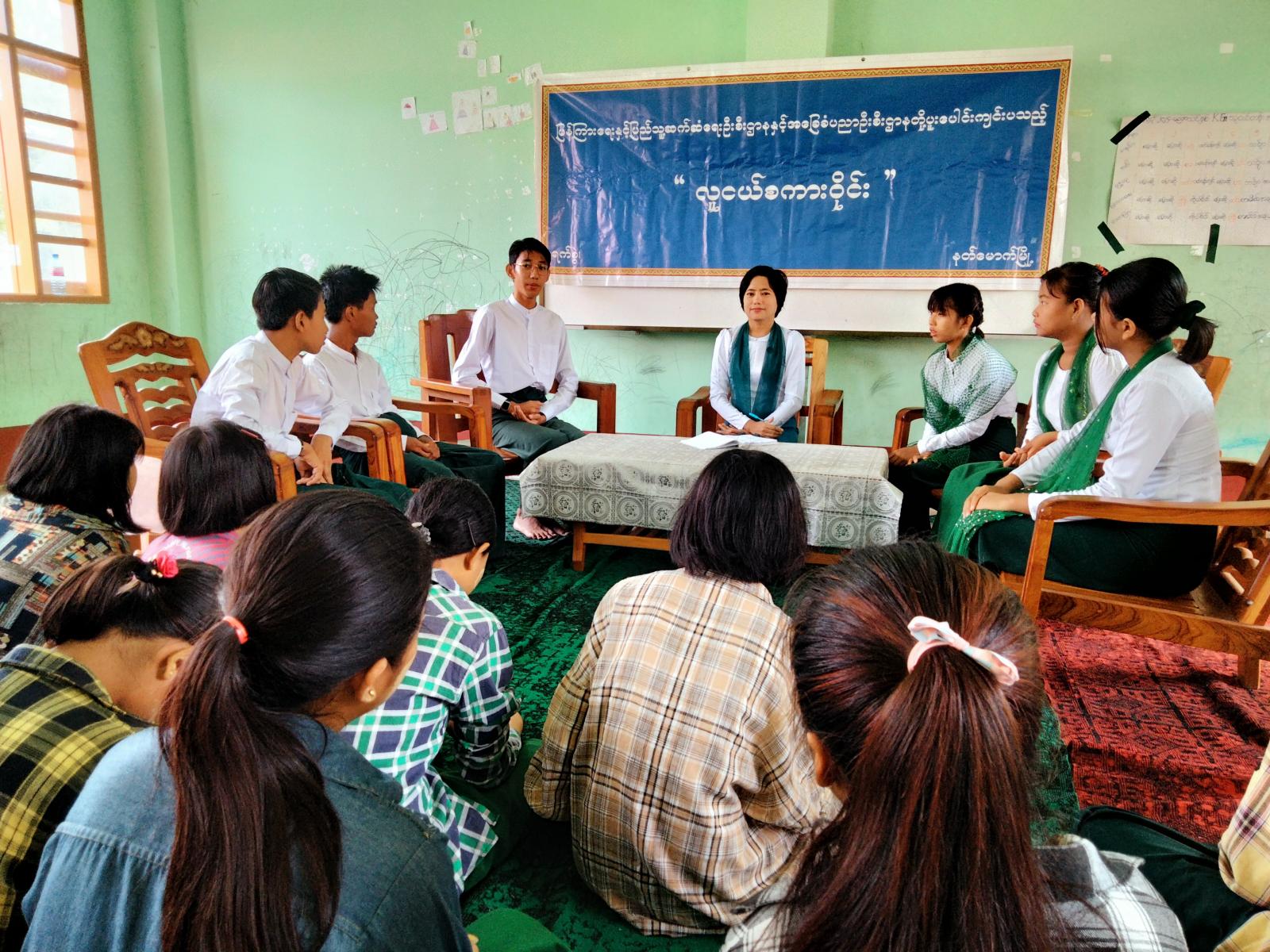 ထို့နောက် လူငယ်စကားဝိုင်းဆွေးနွေးပွဲကို ကျင်းပခဲ့ရာ မြို့နယ်ပြန်ကြားရေးနှင့်ပြည်သူ့ဆက်ဆံရေးဦးစီးဌာန ဦးစီးအရာရှိဒေါ်ဥမ္မာခင်က ဦးဆောင်ဆွေးနွေးသူအဖြစ်ဆောင်ရွက်ပြီး အမှတ်(၂) အခြေခံပညာအထက်တန်း ကျောင်းမှကျောင်းသား/သူများဖြစ်ကြသည့် Grade-10 ကျောင်းသား မောင်သီဟနိုင်က လူငယ်နှင့် ကျန်းမာရေး၊ Grade-10 ကျောင်းသူ မခင်သူဇာထွန်းက လူငယ်နှင့်ယဉ်ကျေးမှု၊ Grade-11 ကျောင်းသူ မချိုချိုမြင့်က လူငယ်နှင့် စာဖတ်ခြင်း၊ Grade-10 ကျောင်းသူ မယွန်းရွှေရည်ခင်ခင်က လူငယ်နှင့် ကြီးပွားရေး၊ Grade-10 ကျောင်းသား မောင်ဟန်မြင့်ဇော်က လူငယ်နှင့်ပညာရေး၊ Grade-10 ကျောင်းသား မောင်သန်းတိုးအောင်က လူငယ်နှင့်ပေါင်းသင်းဆက်ဆံရေး ခေါင်းစဉ်များဖြင့်လည်းကောင်း အသီးသီး ဆွေးနွေးကြပြီး၊ စကားဝိုင်းဆွေးနွေးပွဲသို့ တက်ရောက်လာကြသည့် ကျောင်းသား/သူများကလည်း အပြန်အလှန် မေးမြန်းဆွေးနွေးခဲ့ကြကြောင်း သိရသည်။