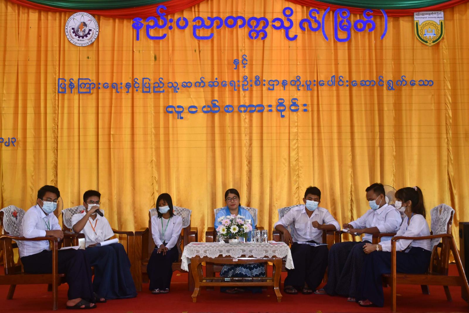 တနင်္သာရီတိုင်းဒေသကြီး၊ မြိတ်မြို့တွင် ကျောင်းသား/ကျောင်းသူ လူငယ်များအနေဖြင့် အသိပညာဗဟုသုတကြွယ်ပြီး ဘက်စုံဖွံ့ဖြိုးတိုးတက်စေရန်နှင့် ဆွေးနွေးမှုများတွင် ပါဝင်ဆွေးနွေးတတ်သည့် အလေ့အကျင့်ကောင်းများ ရရှိစေရန်အတွက် နည်းပညာတက္ကသိုလ် (မြိတ်) တွင် လူငယ်စကားဝိုင်းကို ယနေ့ နံနက်(၉)နာရီခွဲက ကျင်းပခဲ့သည်။