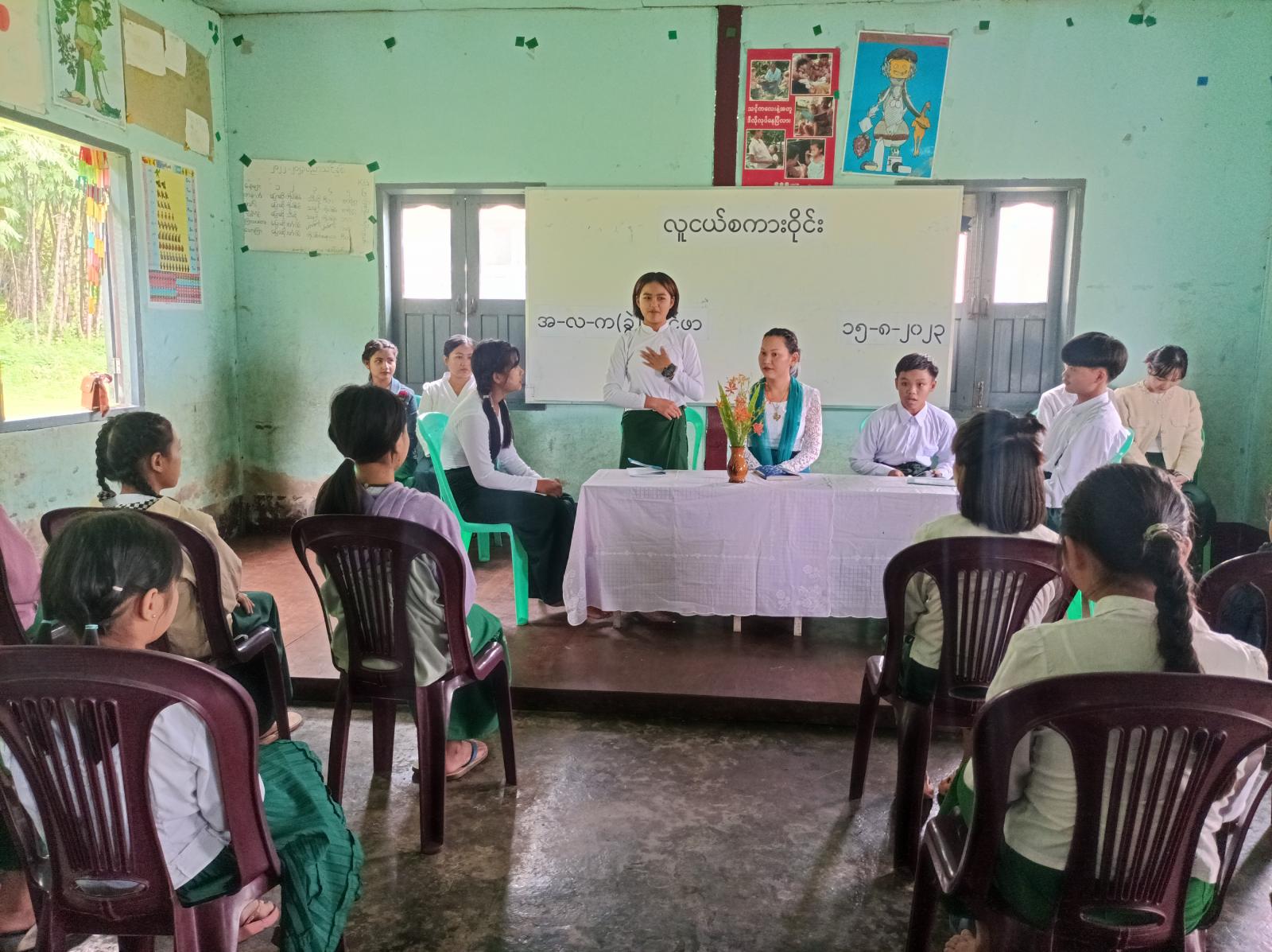ဆက်လက်၍ လူငယ်စကားဝိုင်းအား ကျင်းပရာ ဦးဆောင်ဆွေးနွေးသူအဖြစ် ပြန်ကြားရေးနှင့် ပြည်သူ့ဆက်ဆံရေးဦးစီးဌာနမှ မြို့ဦးစီးမှူး ဒေါ်ထင်ထင်ကျော်က ဆောင်ရွက်ခဲ့ပြီး Grade-8 မှ မမြယွန်းဗိုလ် က လူငယ်နှင့်ရည်မှန်းချက်ခေါင်းစဉ်ဖြင့်လည်ကောင်း၊ Grade-8 မှ မောင်စိုင်းဆိုင်ဟန်က လူငယ်နှင့် ကိုယ်ကျင့်တရား ခေါင်းစဉ်ဖြင့်လည်ကောင်း၊ Grade-6 မှ မနန်းဝီးဆိုင်က လူငယ်နှင့်မူးယစ်ဆေး ခေါင်းစဉ် ဖြင့်လည်ကောင်း၊ Grade-6 မှ မောင်စိုင်းခမ်းအွန်ဖက လူငယ်နှင့်အားကစားခေါင်းစဉ်ဖြင့်လည်ကောင်း အသီးသီးဆွေးနွေးခဲ့ကြပြီး တက်ရောက် လာကြသော ကျောင်းသား၊ကျောင်းသူများမှ သိရှိလိုသည့် အကြောင်းအရာ များကို မေးမြန်းဆွေးနွေးခဲ့ရာ သက်ဆိုင်ရာခေါင်းစဉ်အလိုက် ဆွေးနွေးသူများက ပြန်လည် ဖြေကြားခဲ့ကြောင်းနှင့် စကားဝိုင်းအပြီးတွင် ငလျင်ဘေးအန္တရာယ်ဆိုင်ရာနှင့် ယာဉ်စည်း ကမ်းလမ်းစည်းကမ်း အန္တရာယ်ဆိုင်ရာ နံရံကပ်စာစောင်များပြသခဲ့ကြောင်း သိရသည်။