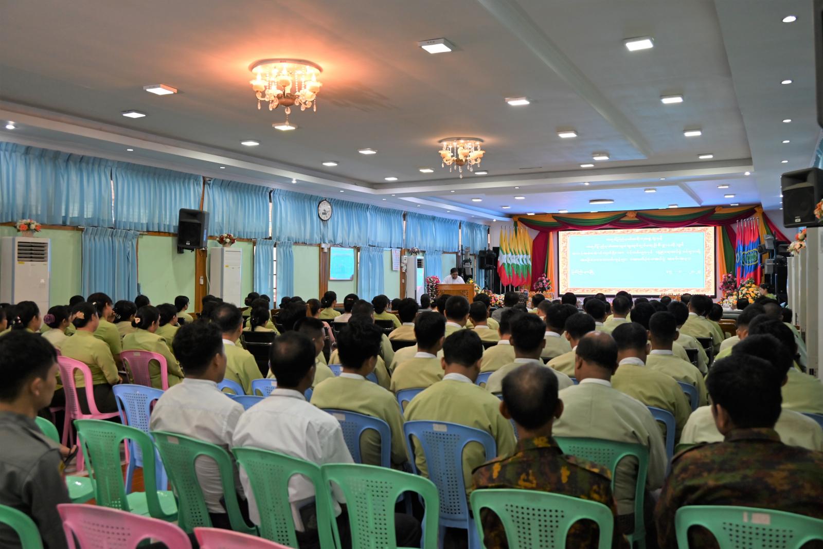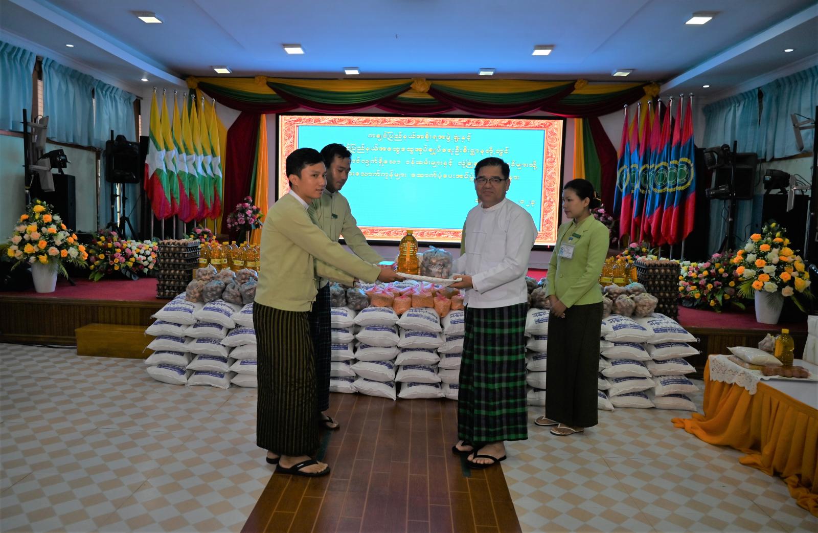 ယင်းနောက် ပြည်နယ်ဝန်ကြီးချုပ်နှင့် ဇနီးဒေါ်နန်ဆိုင်း၊ ပြည်နယ်အစိုးရအဖွဲ့ဝင်ဝန်ကြီးများ၊ ပြည်နယ်ဥပဒေချုပ်၊ ပြည်နယ်အစိုးရအဖွဲ့အတွင်းရေးမှူးနှင့် ဇနီးတို့က ပြည်နယ်အစိုးရအဖွဲ့ရုံး၊ ပြည်နယ်အထွေထွေအုပ်ချုပ်ရေးဦးစီးဌာနရုံး၊ လုံခြုံရေးတပ်ဖွဲ့ဝင်များ၊ ကိုဗစ်-၁၉ ထိန်းချုပ်ရေးနှင့် အရေးပေါ်တုံ့ပြန်ရေးကော်မတီရုံး၊ အဂတိလိုက်စားမှုတားဆီးကာကွယ်ရေးအဖွဲ့ရုံး၊ နိုင်ငံ့စီးပွားမြှင့်တင်ရေးရုံးအဖွဲ့၊ သတင်းအဖွဲ့နှင့် ဧရာဝတီရိပ်သာတို့တွင် တာဝန်ထမ်းဆောင်နေကြသော အရာထမ်း/အမှုထမ်းများနှင့် နေ့စားဝန်ထမ်း စုစုပေါင်း(၃၇၄)ဦးတို့အတွက် စုစုပေါင်းငွေကျပ် ၁၈၈၈၀၀၀၀ တန်ဖိုးရှိ တစ်ဦးလျှင် ဆန်(၆)ပြည်အိတ် (၁)အိတ်စီ၊ ကြက်ဥ(၃၀)လုံး၊ ဆီ၊ ကြက်သွန်နီနှင့် ကုလားပဲ(၁)ပိဿာစီတို့ကို အသီးသီးထောက်ပံ့ပေးအပ်ရာ ဝန်ထမ်းတစ်ဦးက ကျေးဇူးတင်စကား ပြန်လည်ပြောကြားခဲ့သည်။