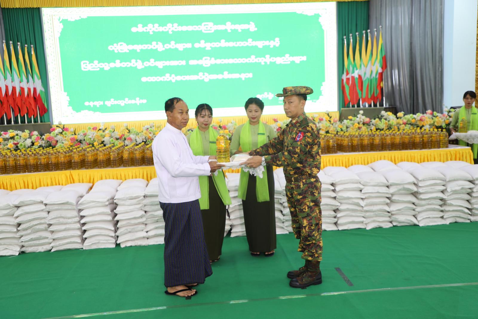 ဆက်လက်၍ တိုင်းဒေသကြီး ဝန်ကြီးချုပ်နှင့် တိုင်းမှူးတို့က လုံခြုံရေးတပ်ဖွဲ့ဝင်များ၊ စစ်မှုထမ်းဟောင်းများနှင့် ပြည်သူ့စစ်တပ်ဖွဲ့ဝင်များအတွက် အခြေခံစားသောက်ကုန်များအား တာဝန်ရှိသူများထံ ထောက်ပံ့ပေးအပ်ခဲ့ပြီး လုံခြုံရေးတပ်ဖွဲ့ဝင်များကိုယ်စား စစ်မှုထမ်းဟောင်း တစ်ဦးက ကျေးဇူးတင်စကား ပြန်လည်ပြောကြားကာ တိုင်းဒေသကြီးဝန်ကြီးချုပ်၊ တိုင်းမှူးနှင့် တာဝန်ရှိသူများက အခမ်းအနားသို့ တက်ရောက်လာသူများ အား ရင်းရင်းနှီးနှီးလိုက်လံ နှုတ်ဆက်အားပေးပြီး အခမ်းအနားကို ရုပ်သိမ်းခဲ့ကြသည်။