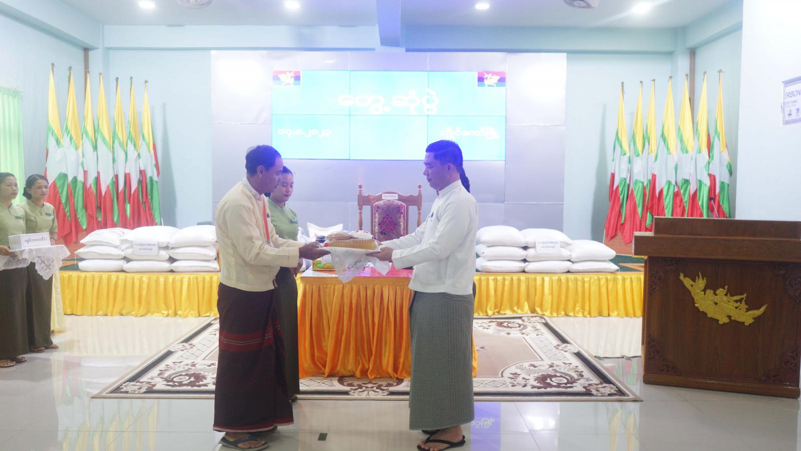 ကယားပြည်နယ်အစိုးရအဖွဲ့မှ မယ်စဲ့ခရိုင်၊ မြို့နယ်မှ လွိုင်ကော်မြို့သို့ ယာယီတိုက်ပွဲရှောင် ရောက်ရှိလာပြီး တာဝန်ထမ်းဆောင်လျက်ရှိသော ဝန်ထမ်းများအား ထောက်ပံ့ ချီးမြှင့်ငွေနှင့် ဆန်၊ဆီ၊ဆား၊ပဲ ပေးအပ်ပွဲအခမ်းအနားကို ယနေ့နံနက်ပိုင်းက ကယားပြည်နယ် အစိုးရအဖွဲ့ရုံး အစည်းအဝေးခန်းမ၌ ကျင်းပပြုလုပ်ခဲ့ရာ ပြည်နယ်ဝန်ကြီးချုပ် ဦးဇော်မျိုးတင် ၊ ပြည်နယ် အစိုးရအဖွဲ့ဝင်များ ၊ ဌာနဆိုင်ရာများနှင့် ဝန်ထမ်းများ တက်ရောက်ခဲ့ကြသည်။