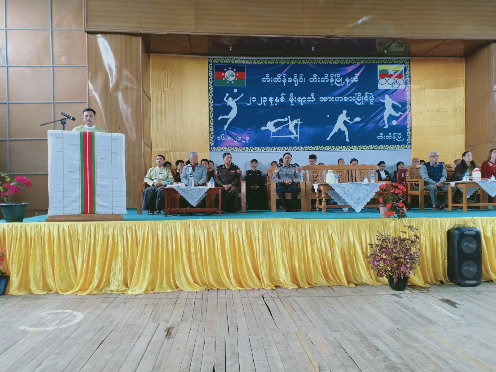 ဦးစွာခရိုင်စီမံအုပ်ချုပ်ရေးအဖွဲ့ဥက္ကဋ္ဌဦးအောင်ချမ်းငြိမ်းက အဖွင့်အမှာစကားပြောကြားကာ အားကစားသမားများအား နှုတ်ဆက်အားပေးစကားပြောကြားသည်။
