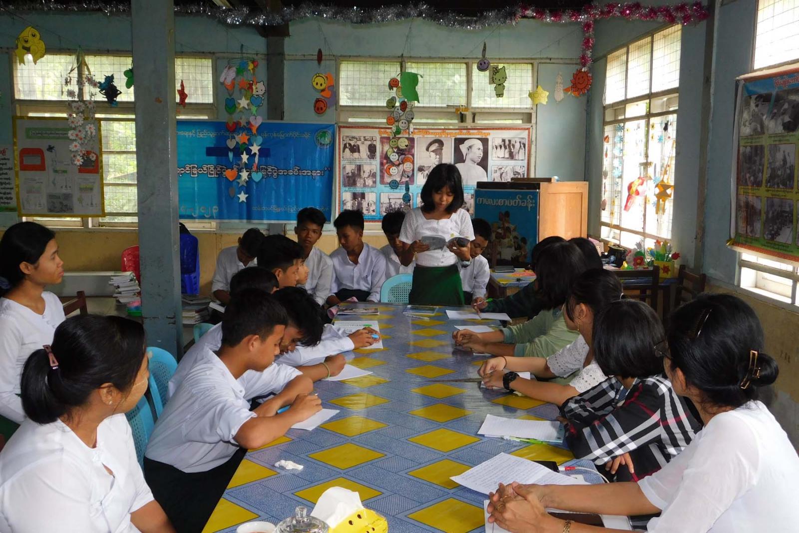 ဆက်လက်၍ မြို့နယ်ပြန်ကြားရေးနှင့်ပြည်သူ့ဆက်ဆံရေးဦးစီးဌာန ဦးစီးအရာရှိ ဒေါ်လဲ့လဲ့အေးက စာရေးဆရာဒေါက်တာကျော်စိန် ရေးသားထားသည့် “လူငယ်လမ်းညွှန်” စာအုပ်မှလူငယ်များနှင့်မလိုလားအပ်သော အလေ့အထများ ခေါင်းစဉ်ပါအကြောင်းအရာများကို စာကြည့်တိုက်အသင်းဝင် ကျောင်းသား၊ ကျောင်းသူကလေးငယ်များကို ဆွေးနွေးရှင်းပြခဲ့ပြီး ကျောင်းသား၊ ကျောင်းသူကလေးများကလည်း စာအုပ်မှလူငယ်များနှင့် မလိုလားအပ်သော အလေ့အထများ ခေါင်းစဉ်ပါအကြောင်းအရာများကို အလှည့်ကျဖတ်ကာ ပြန်လည်၍ဆွေးနွေးခဲ့ကြကြောင်းလည်း သိရသည်။